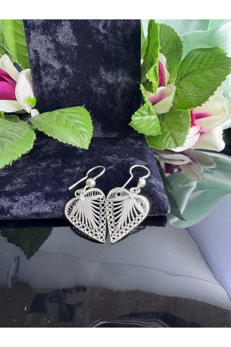 Kalp motifi 925 ayar telkari gümüş küpe - SG202313333
