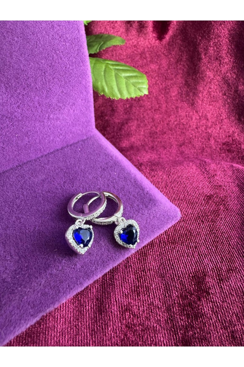 Kalp motifi parlament mavisi zirkon taşlı 925 ayar telkari gümüş küpe - SG202313347