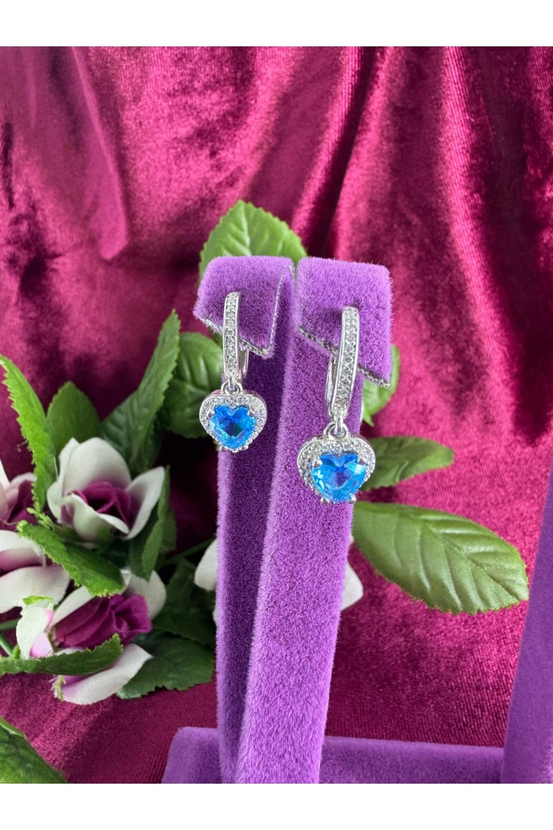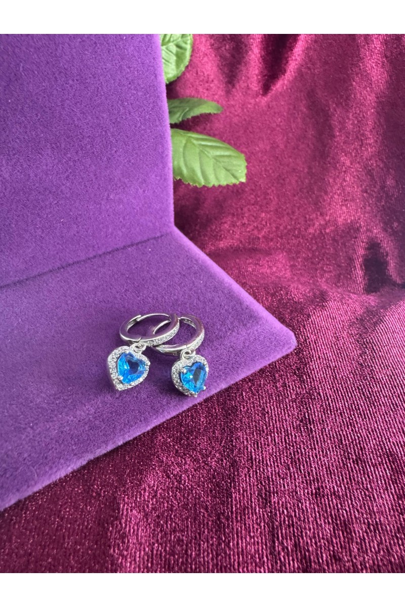 Kalp motifi turkuazi zirkon taşlı 925 ayar telkari gümüş küpe - SG202313348