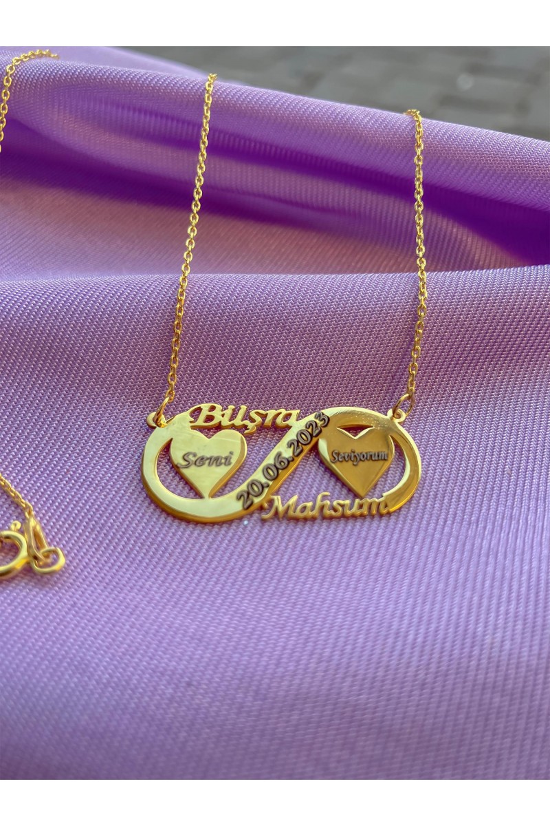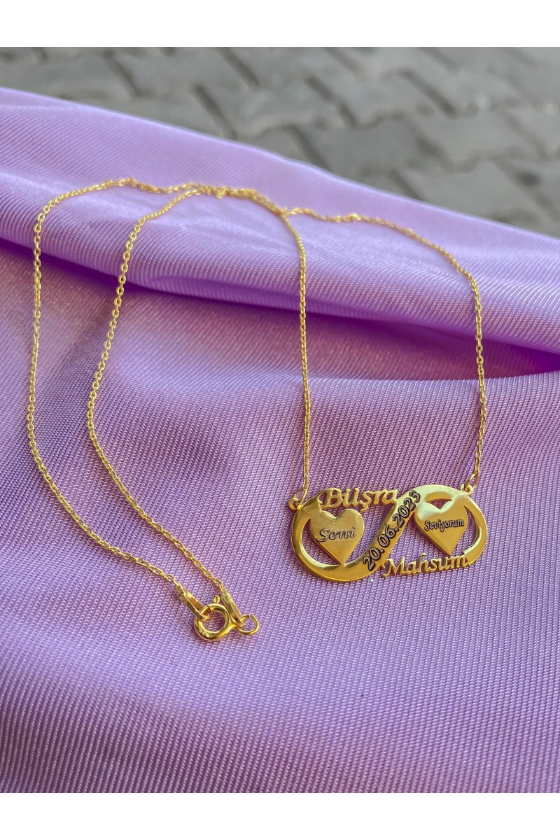 Kalp Sonsuzluk ve Tarihli Altın Kaplama Gümüş İsimli Kolye - SG20230661