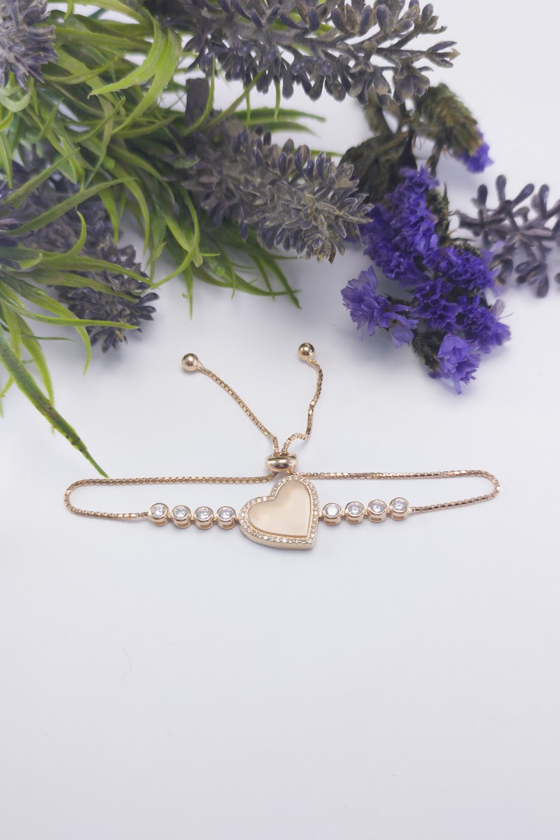 Kalp Tasarım Su Yolu Zirkon Gümüş Bileklik - SG20230337