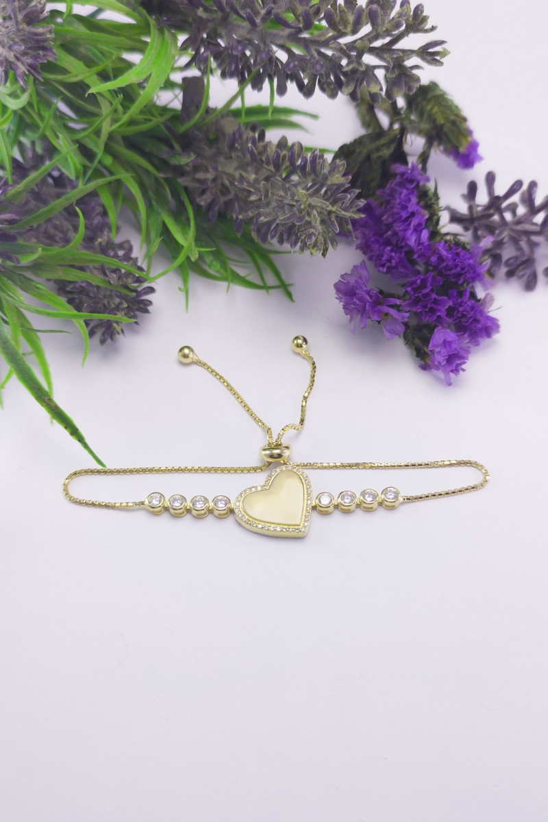 Kalp Tasarım Su Yolu Zirkon Gümüş Bileklik - SG20230338