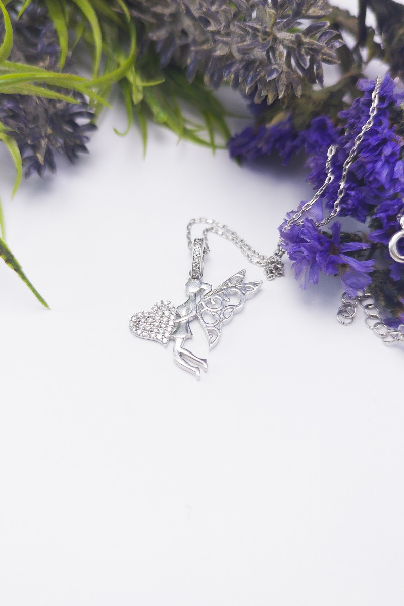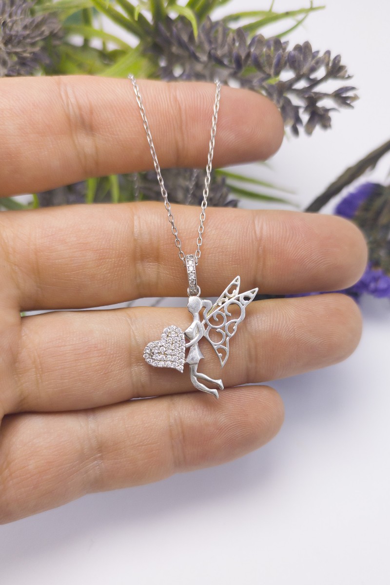 Kalp Taşıyıcsı Tasarım Zirkon Gümüş Kolye - SG20230323