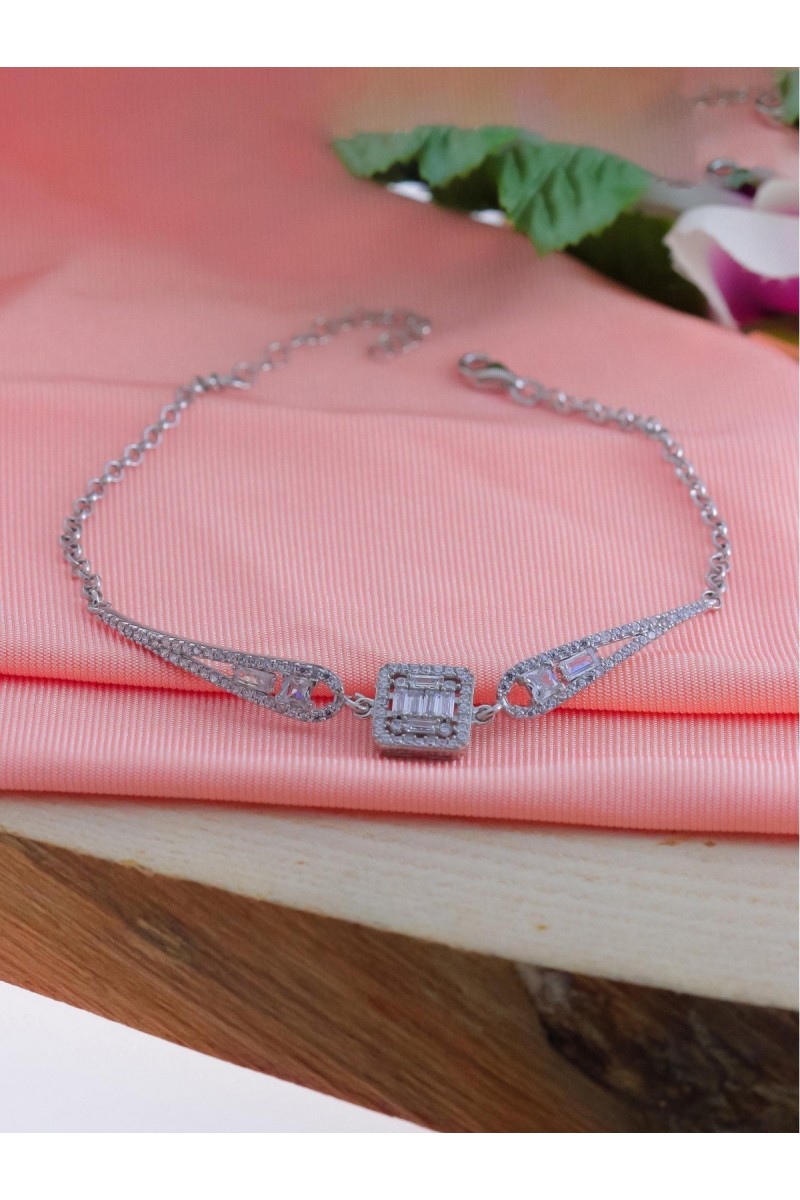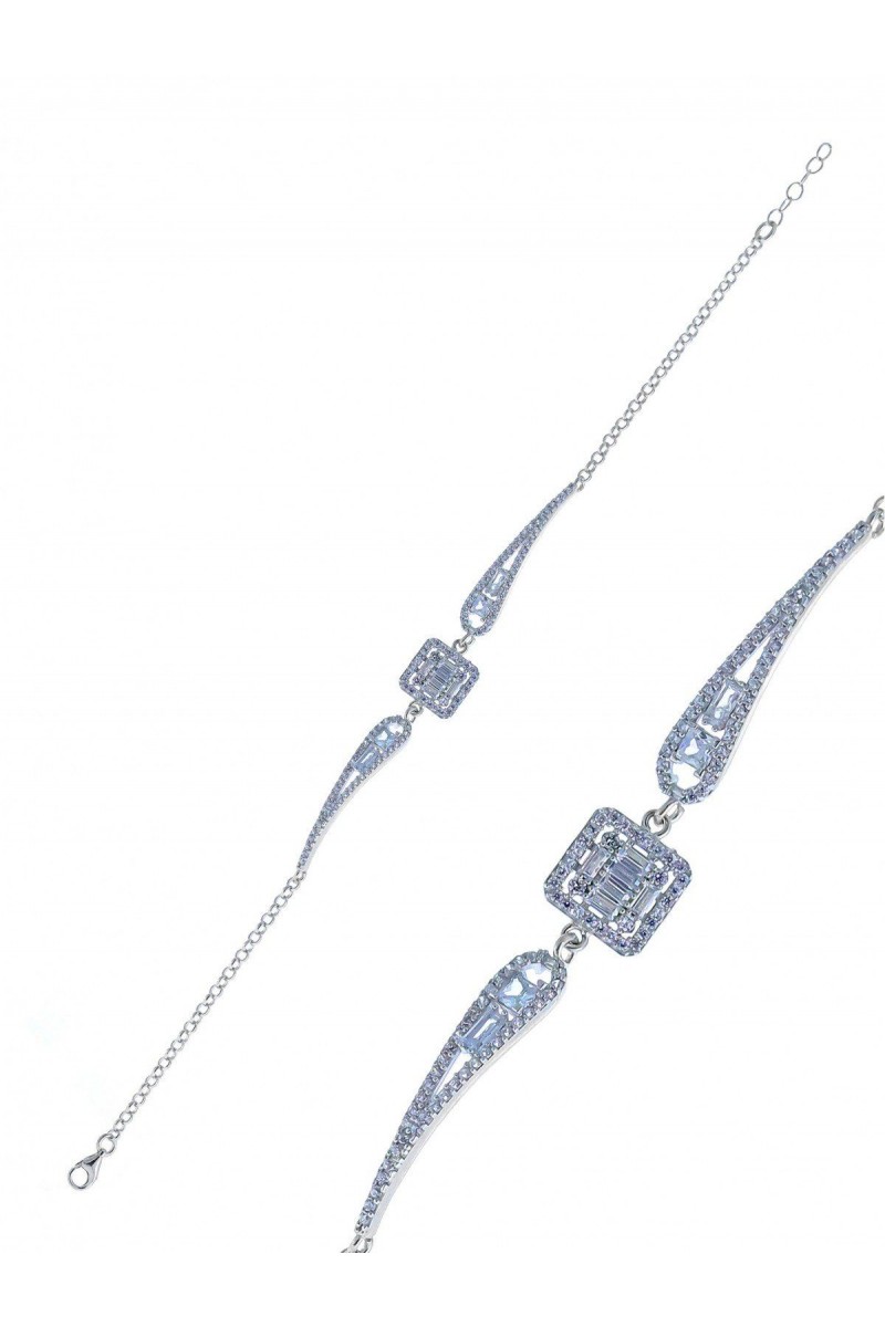 Kare Model Baget Zirkon Taşlı Gümüş Bileklik - SG20230667