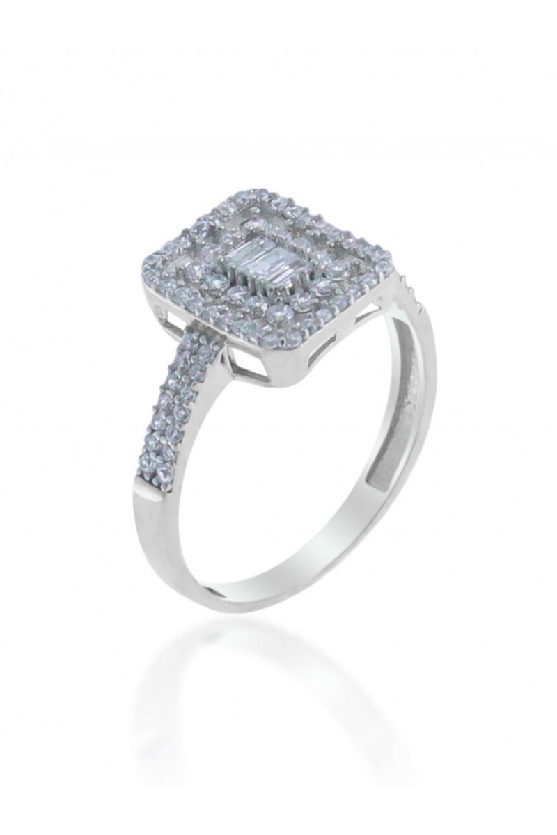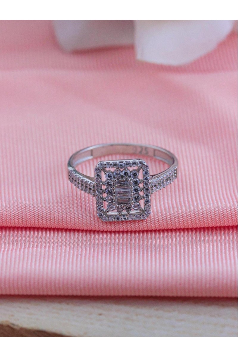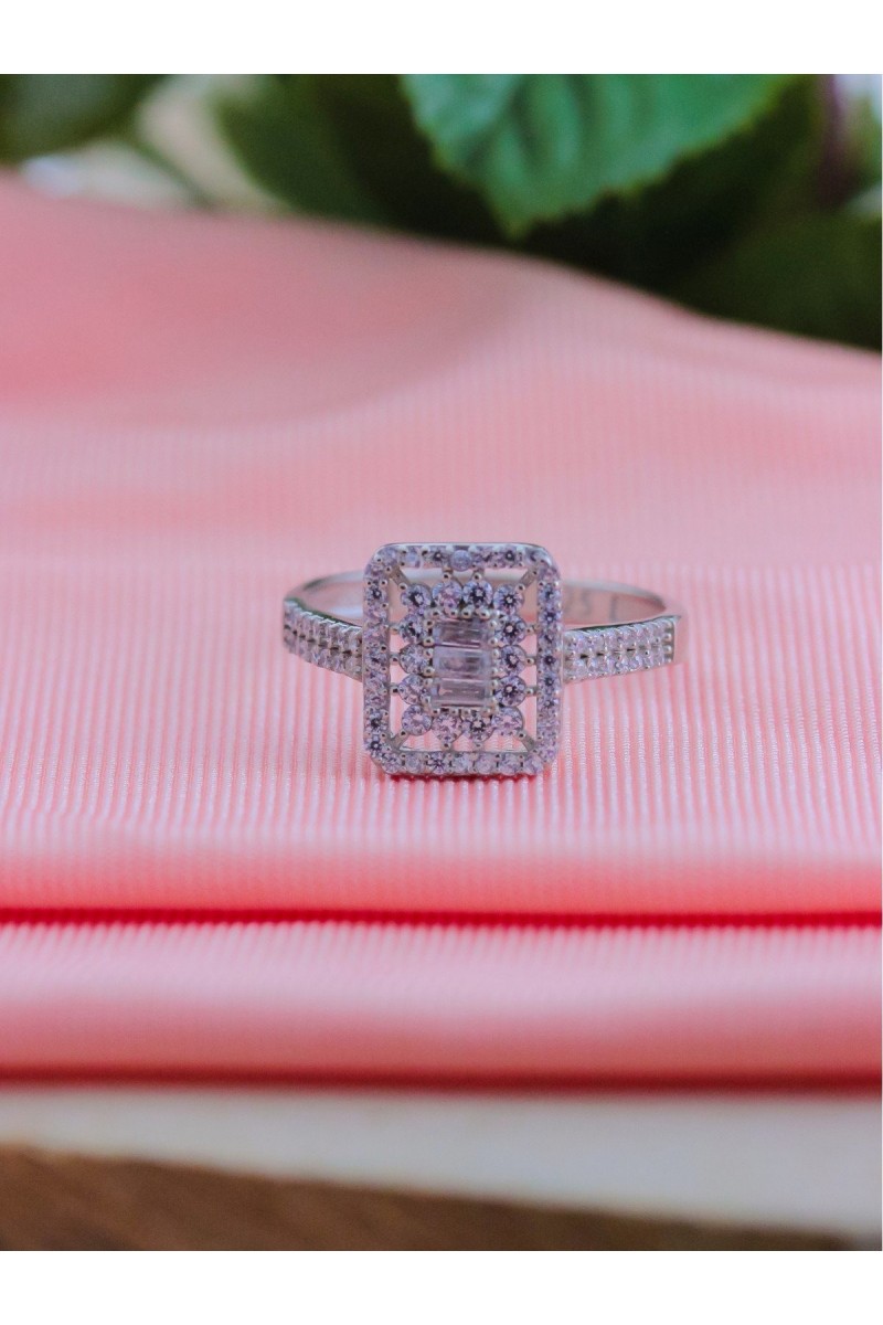Kare Model Baget Zirkon Taşlı Gümüş Yüzük - SG20230673