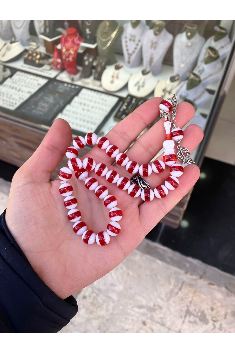 Kırmızı Beyaz Taraftar Toz Kehribar Tesbih - SG20230519