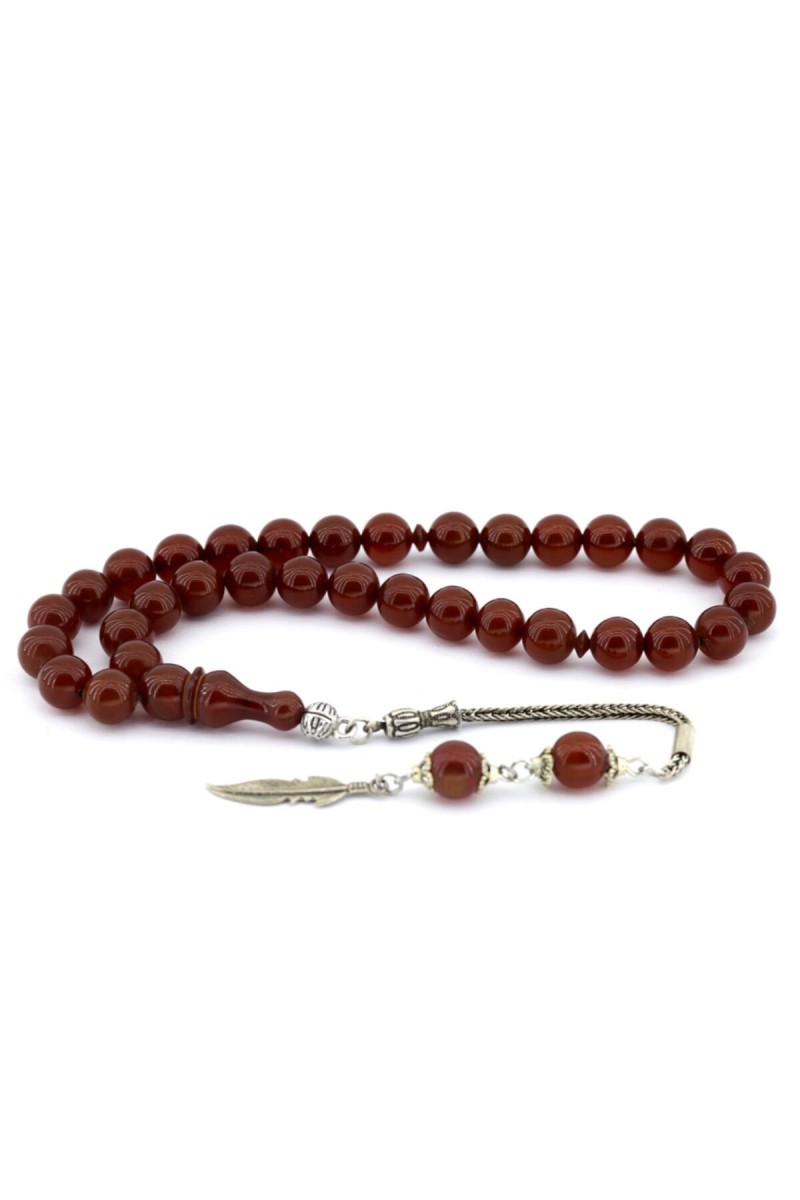 Kırmızı Küre Kesim Sıkma Kehribar Tesbih - SG20230390