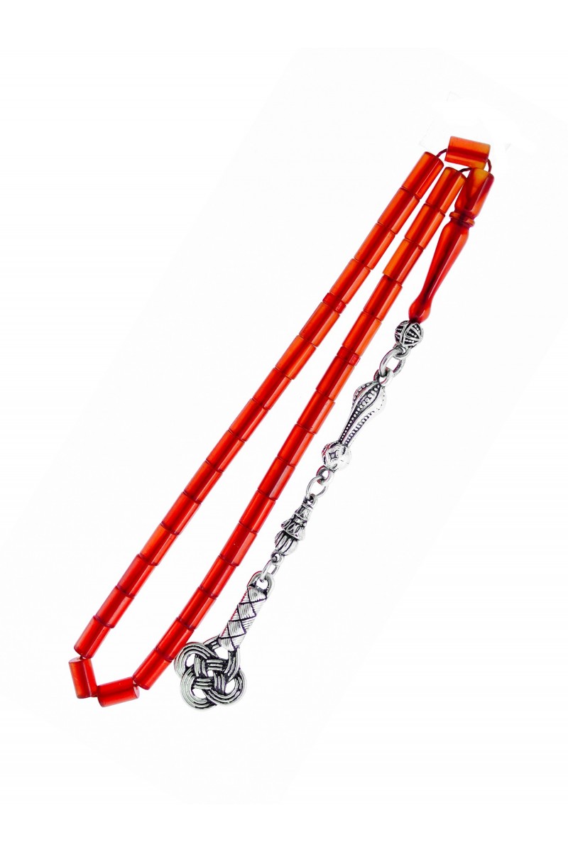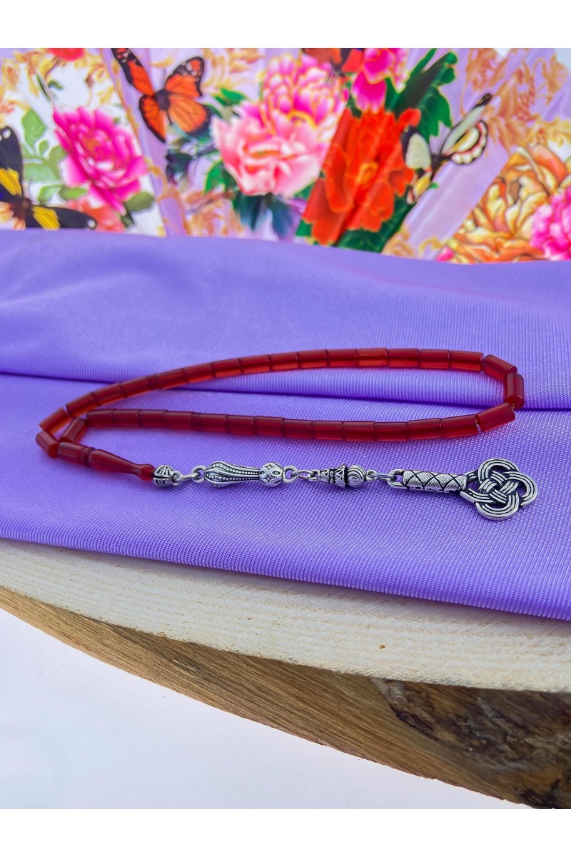 Kırmızı Renkli Kesme Ateş Kehribar Tesbih - SG20230647