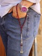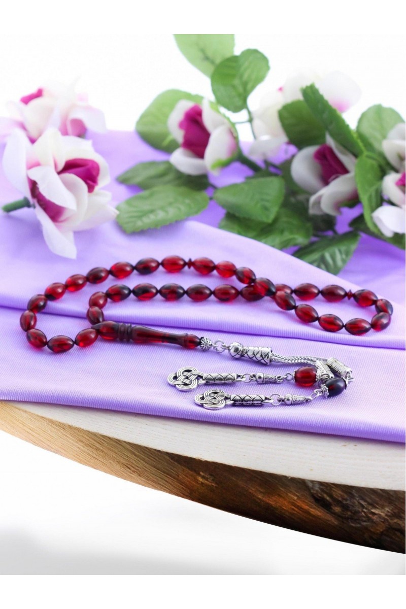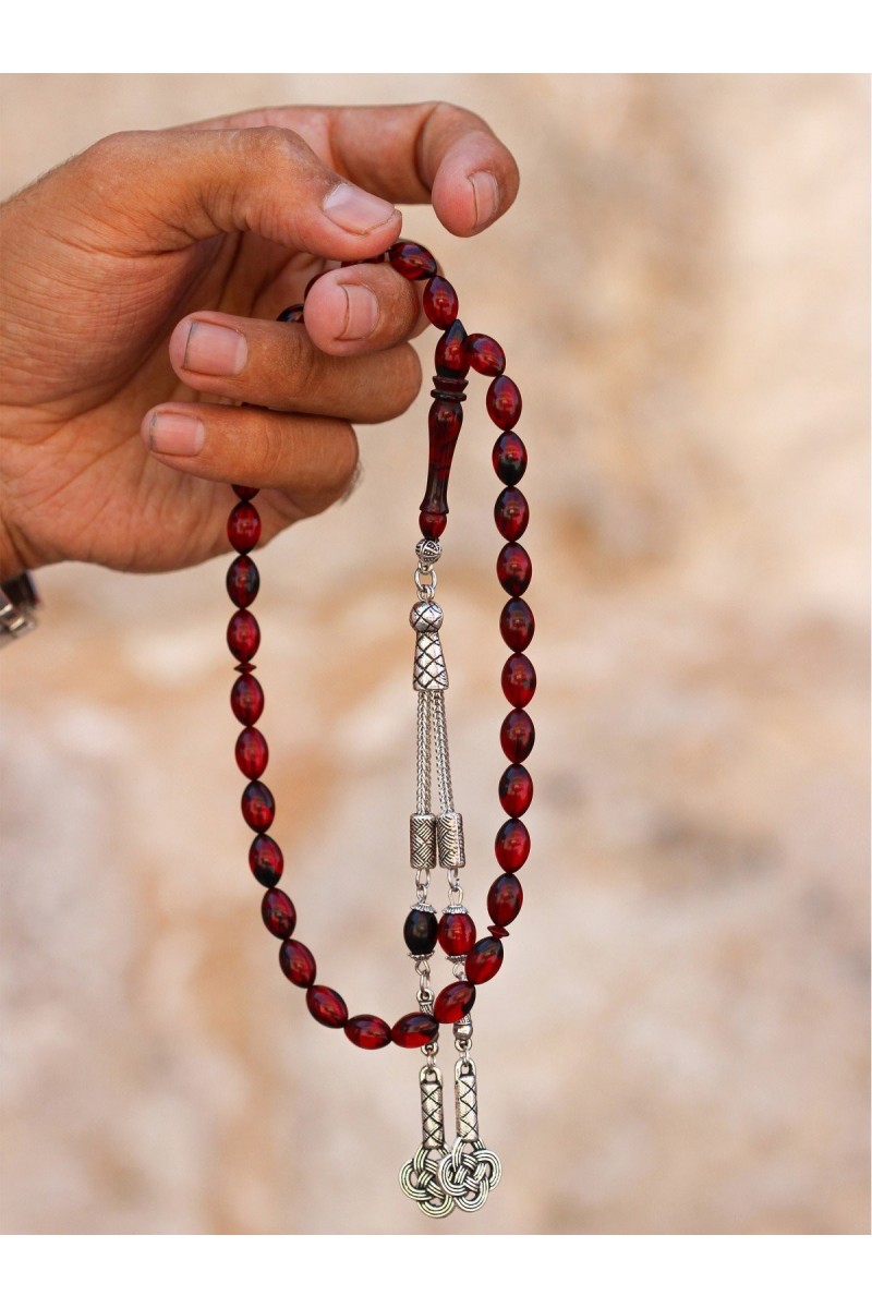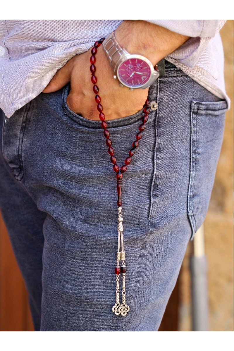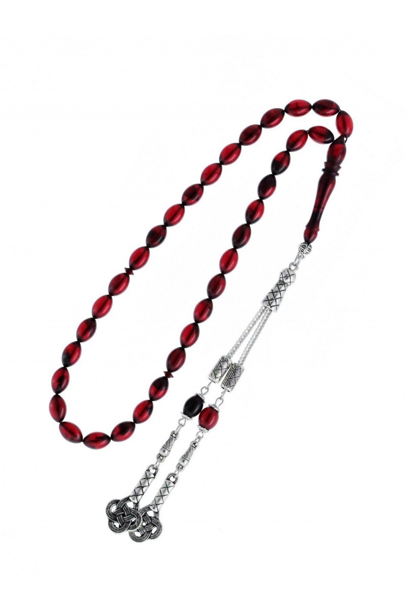Kırmızı Siyah Hareli Aşk Düğümü Püsküllü Ateş Kehribar Tesbih - SG20230681