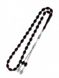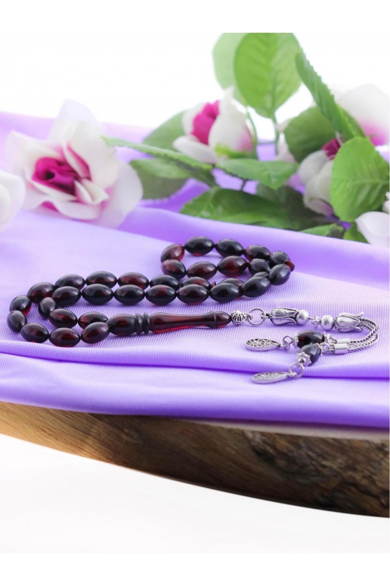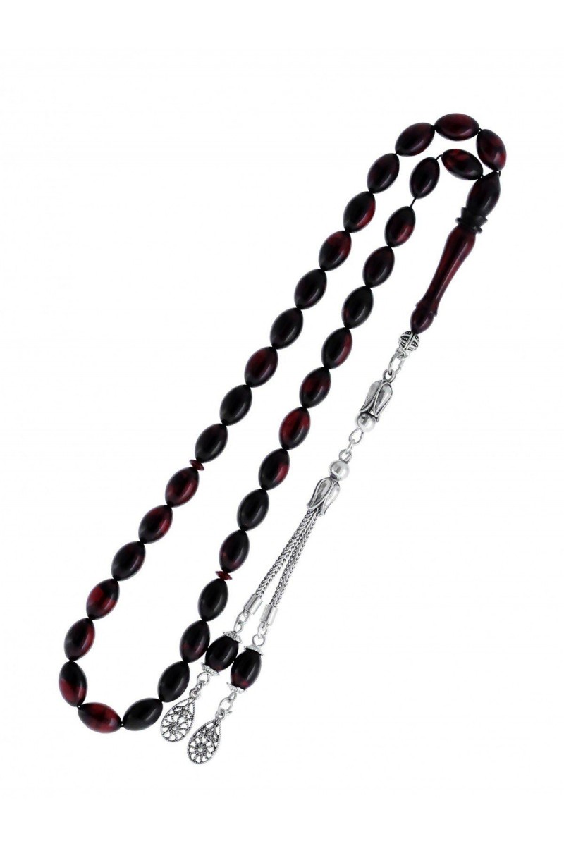Kırmızı Siyah Hareli Gümüş Püsküllü Ateş Kehribar Tesbih - SG20230686