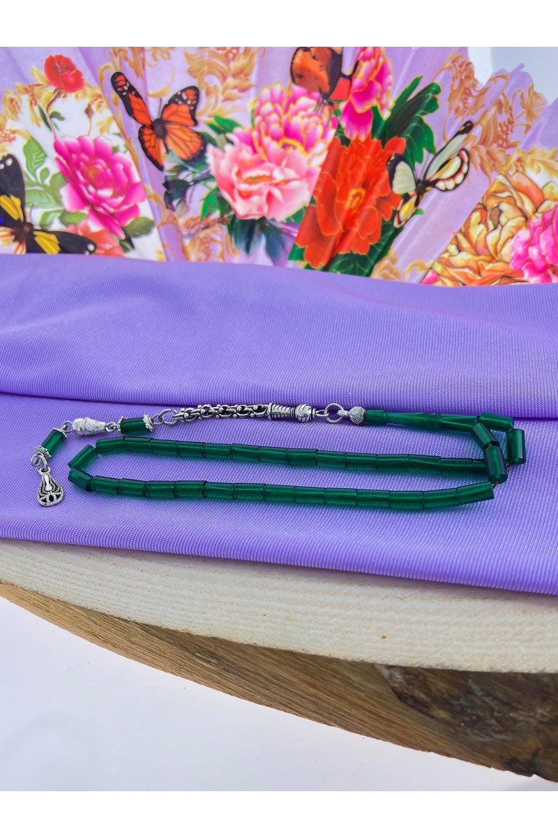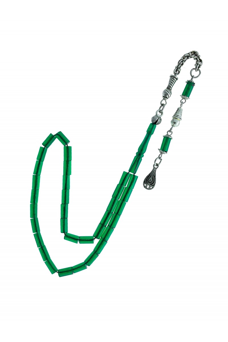 Koyu Yeşil Renk Kesme Ateş Kehribar Tesbih - SG20230634