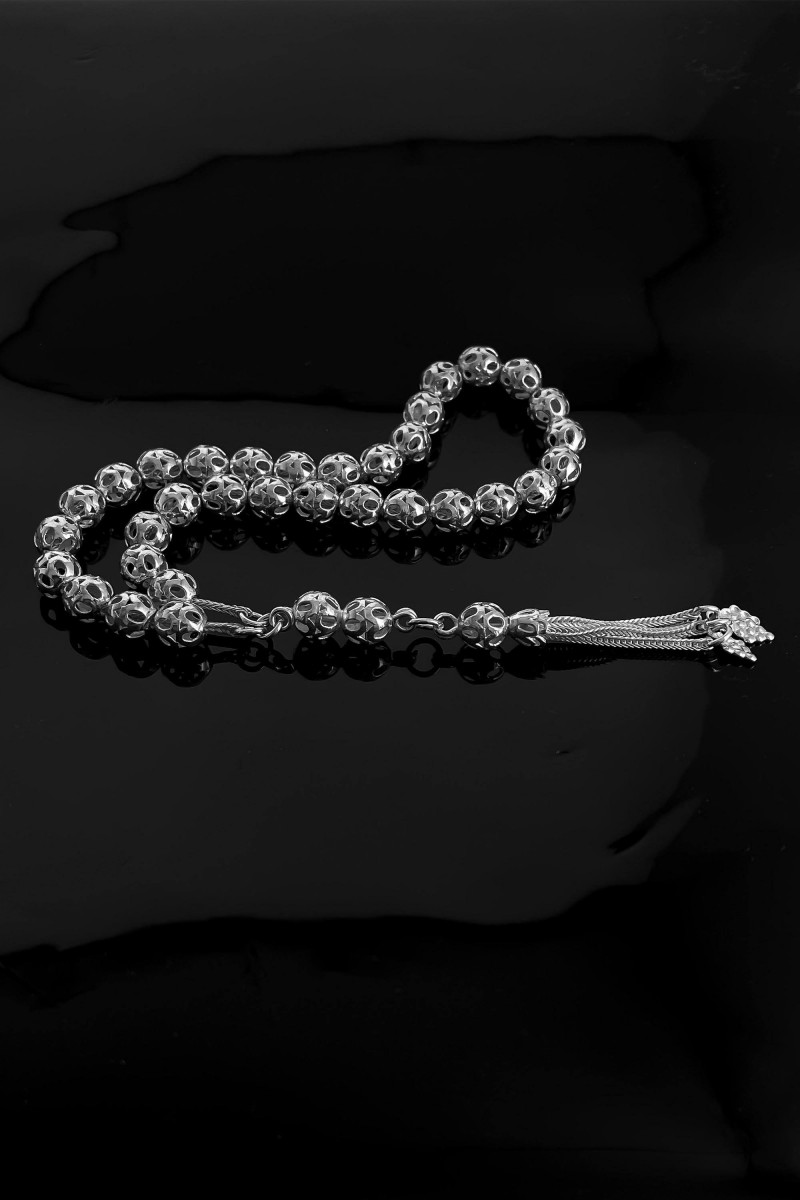 Küre Kesim Kafes Model Telkari Gümüş Tesbih - SG20231013