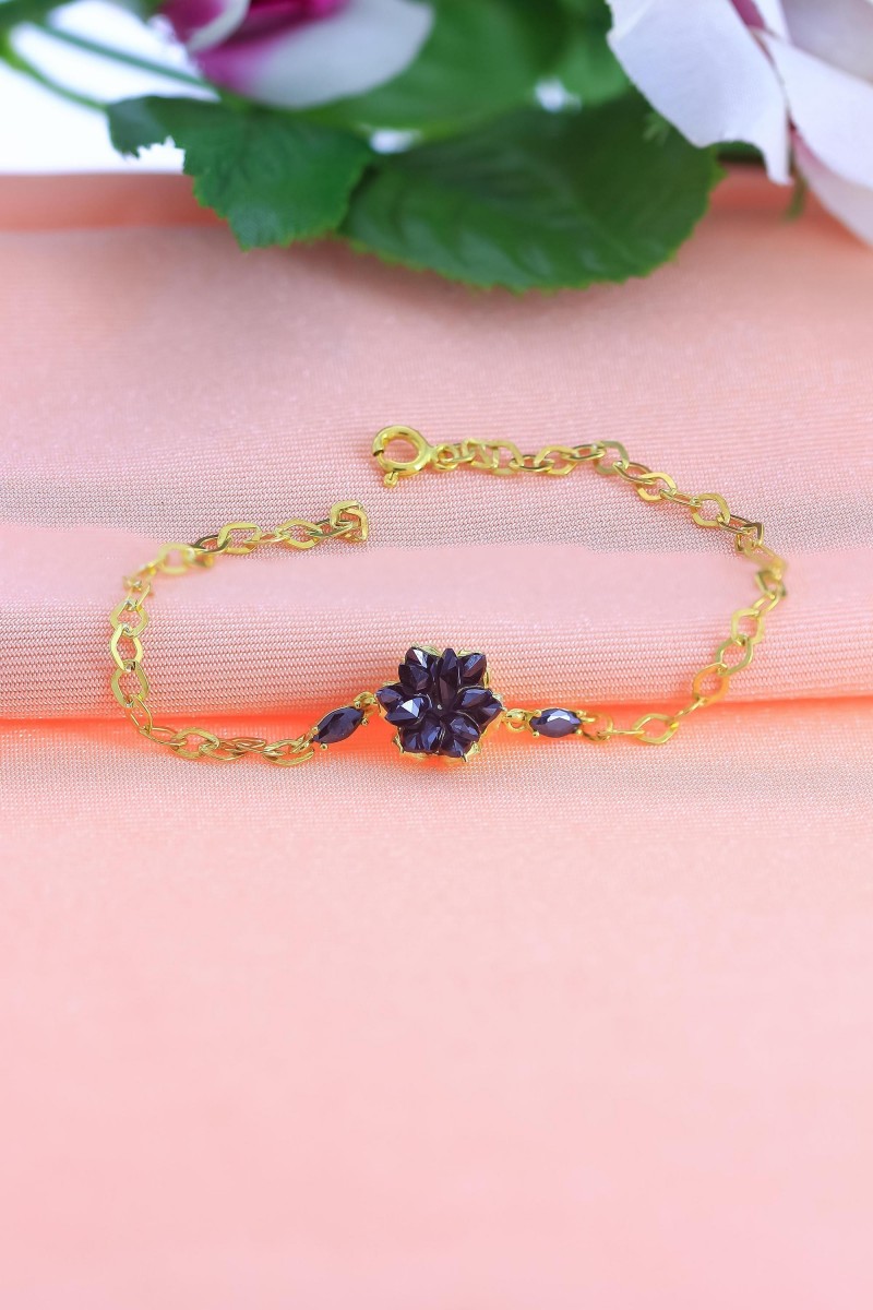 Lotus Model Siyah Zirkon Taşlı Altın Kaplama Gümüş Bileklik - SG20231033
