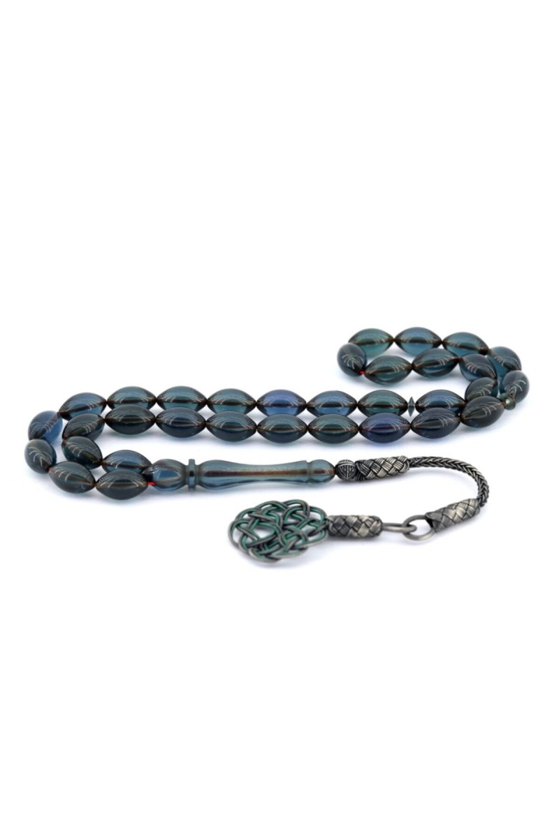 Mavi Siyan Kazaz Püsküllü Ateş Kehribar Tesbih - SG20230359