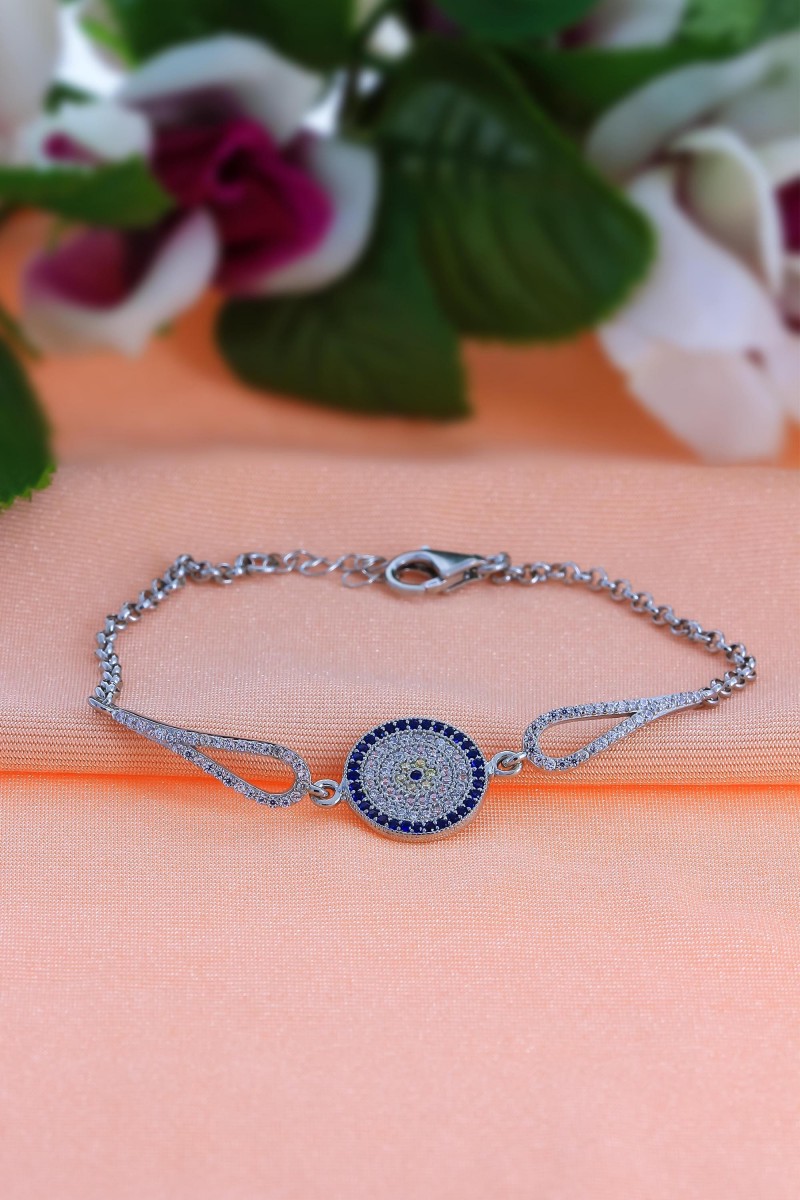 Nazar Boncuğu Model Zirkon Taşlı Gümüş Bileklik - SG20231165
