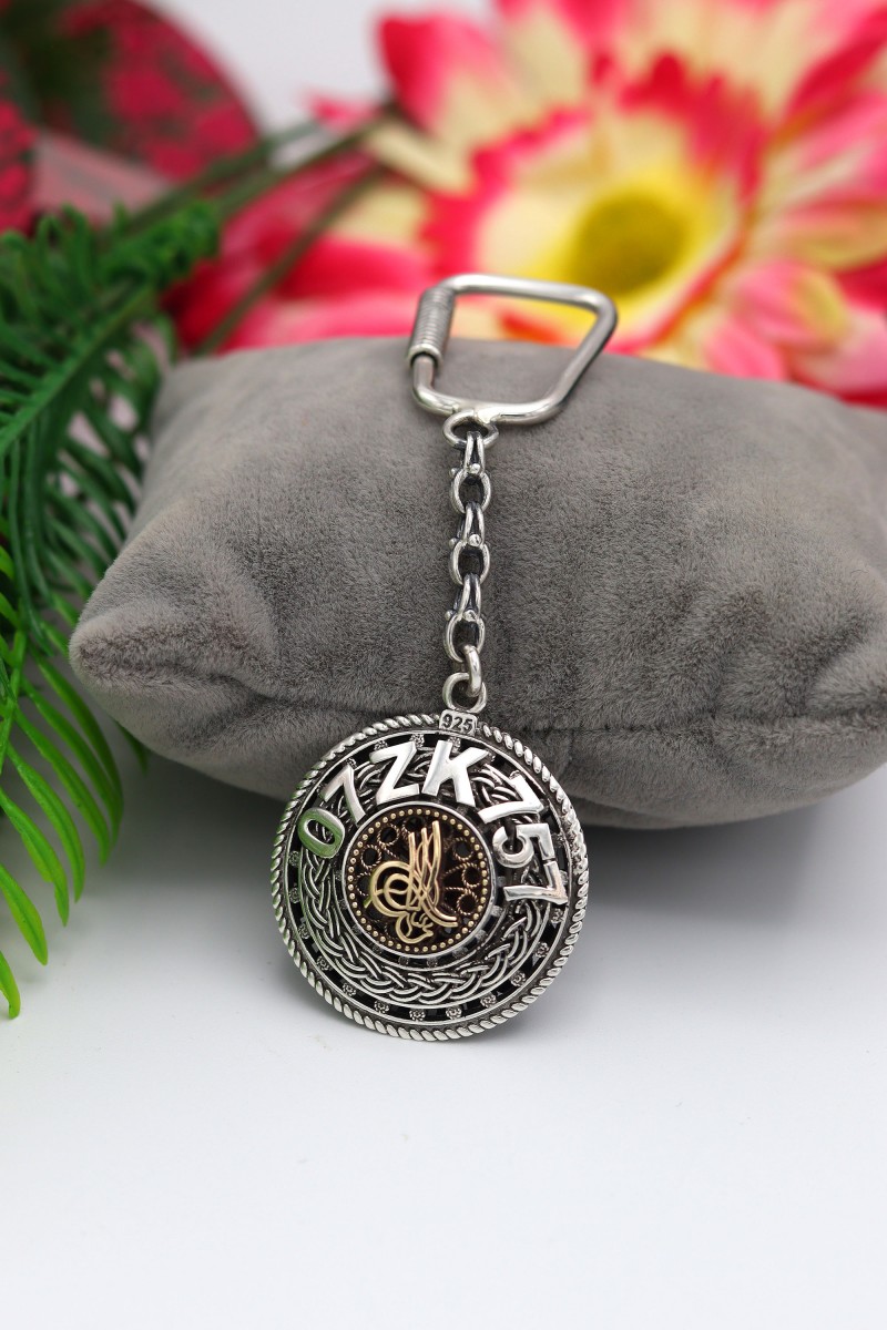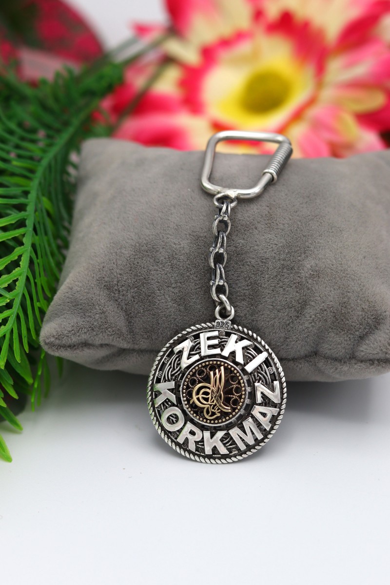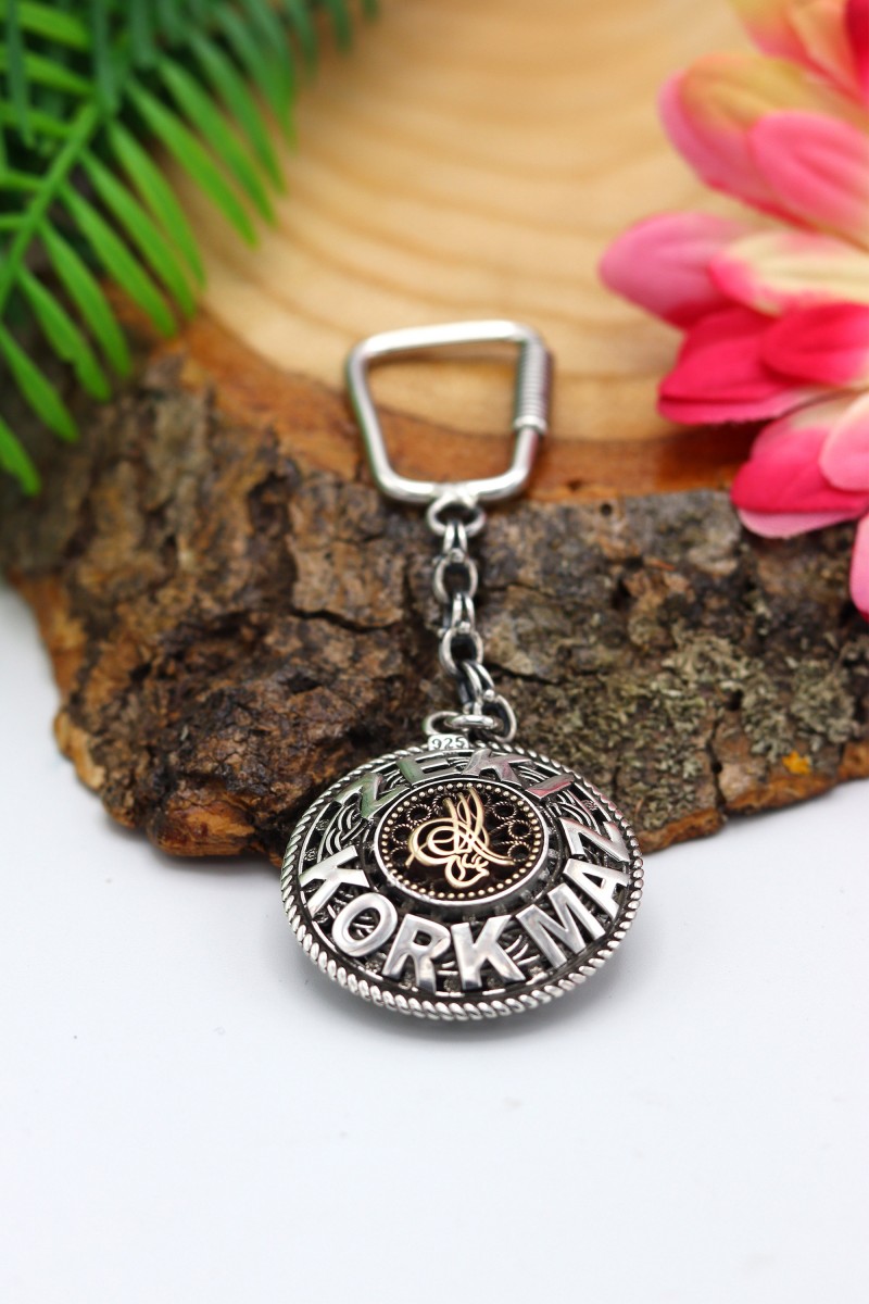 Osmanlı Tuğralı İsimli Plakalı Gümüş Anahtarlık - SG20230003