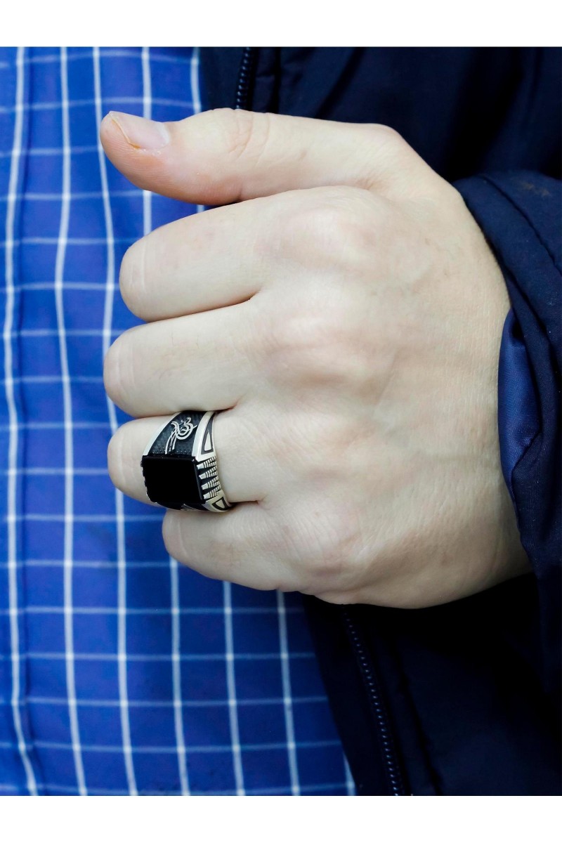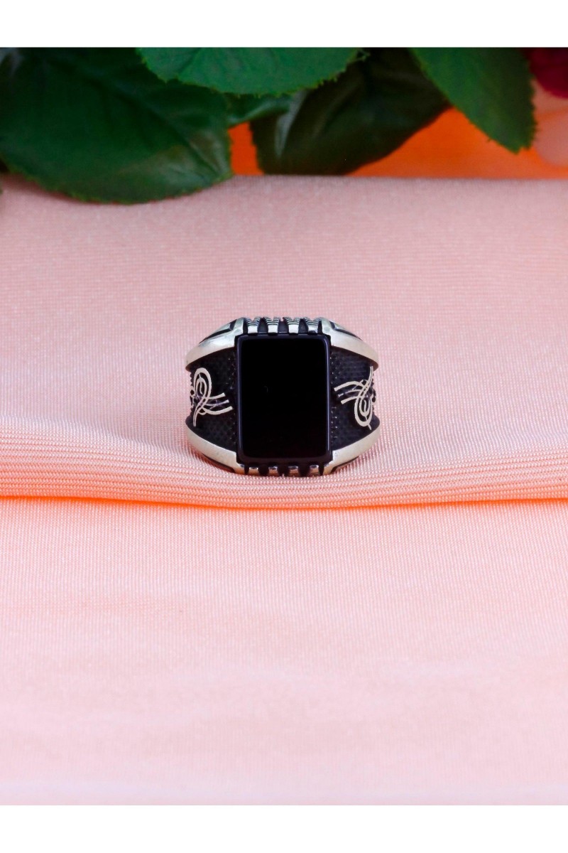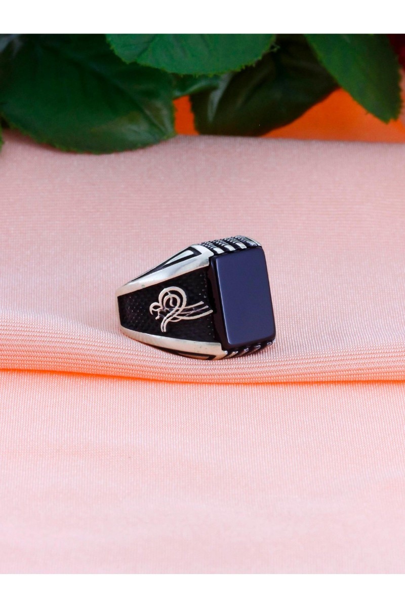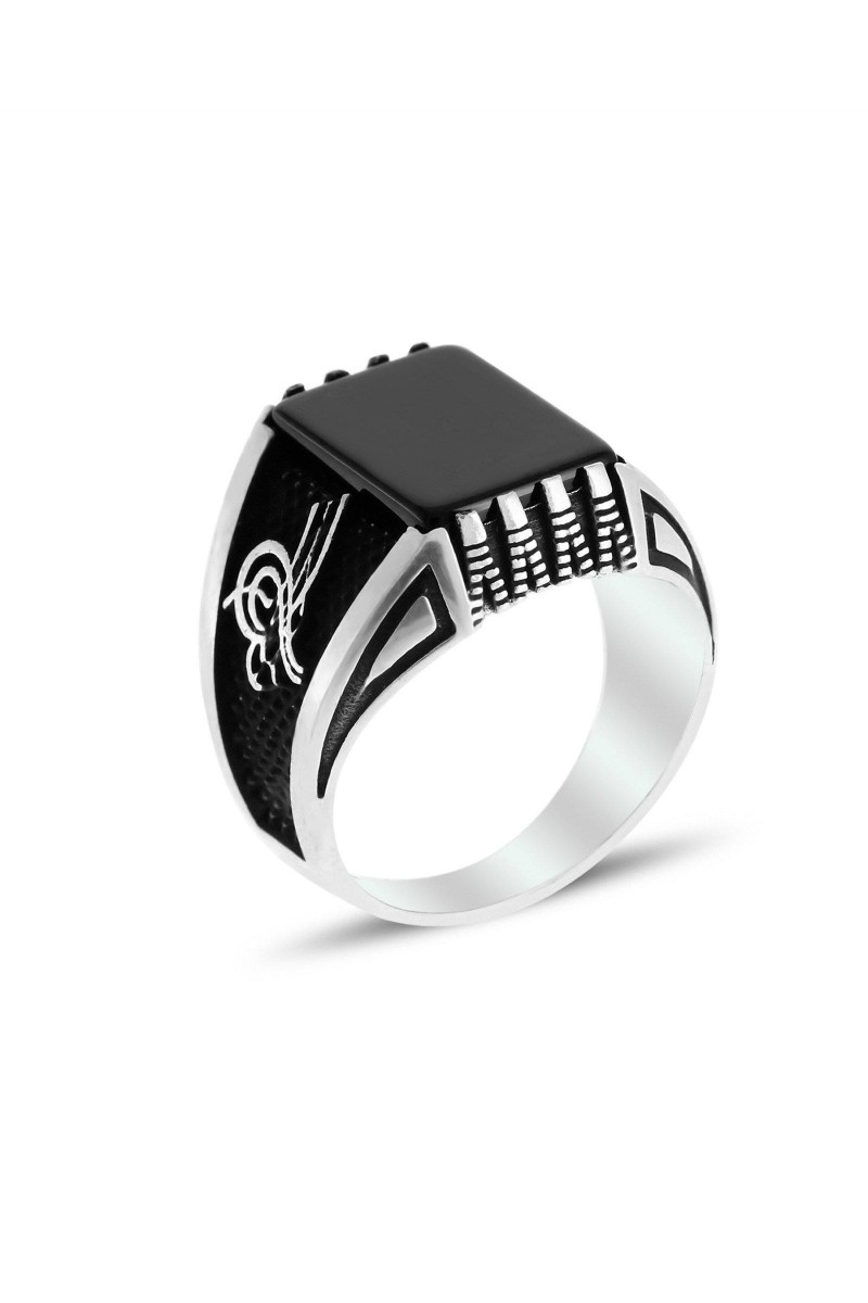 Osmanlı Tuğrası İşlemeli Oniks Taşlı Erkek Gümüş Yüzük - SG20230807