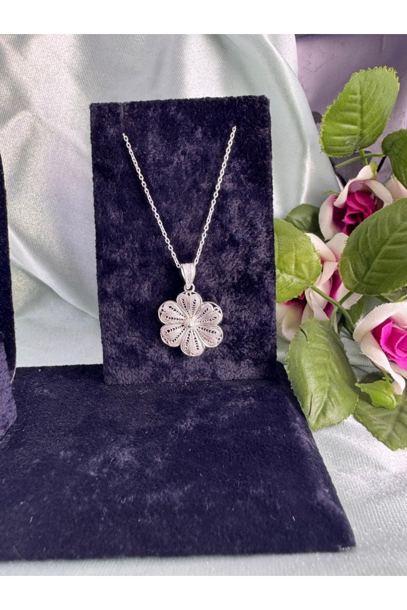 papatya motifi el işi telkari gümüş kolye - SG20231452