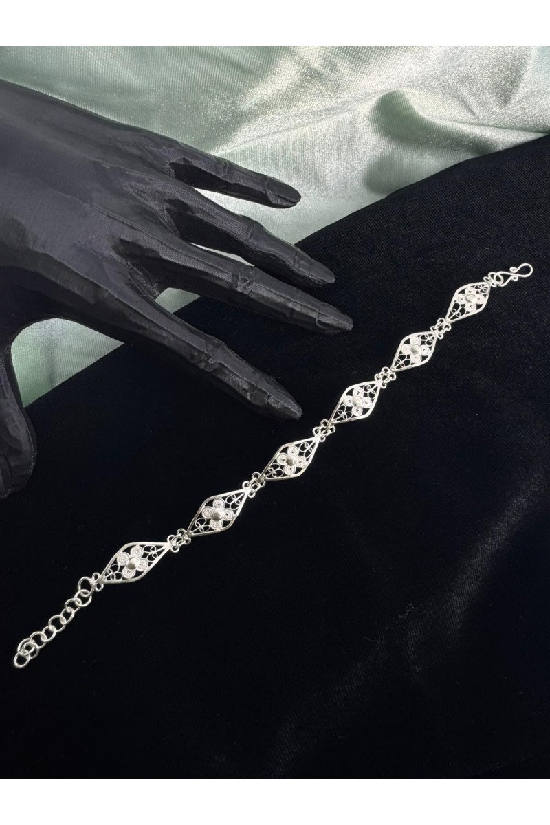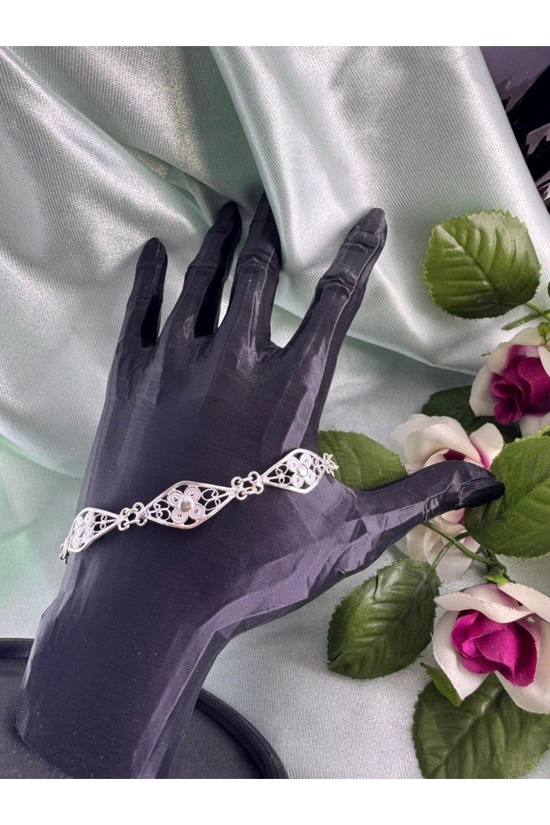 piramit model yonca motifi El Işçiliği Telkari Gümüş Bileklik - SG20231489