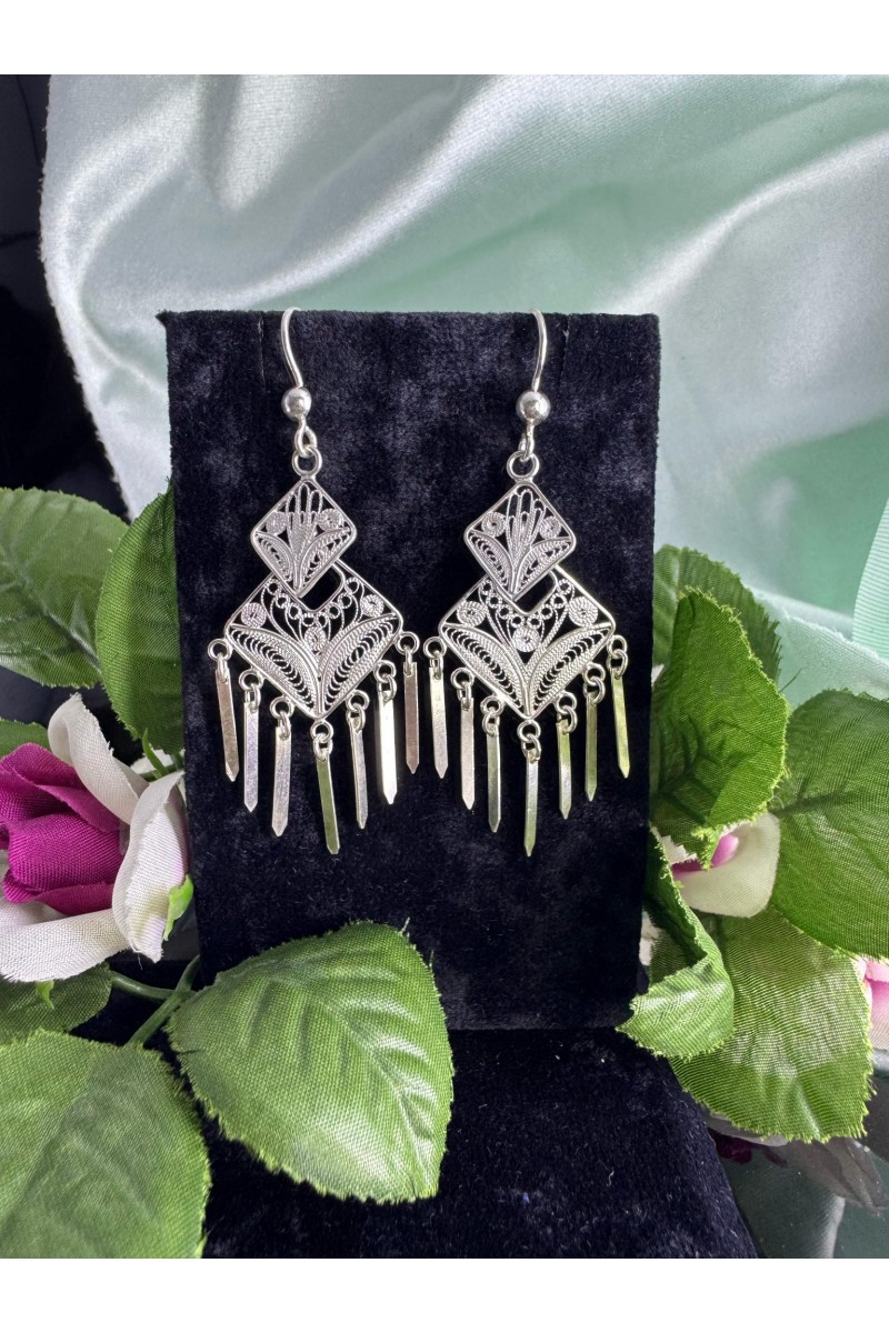 Piramit sallantılı model 925 ayar telkari gümüş küpe - SG202313339