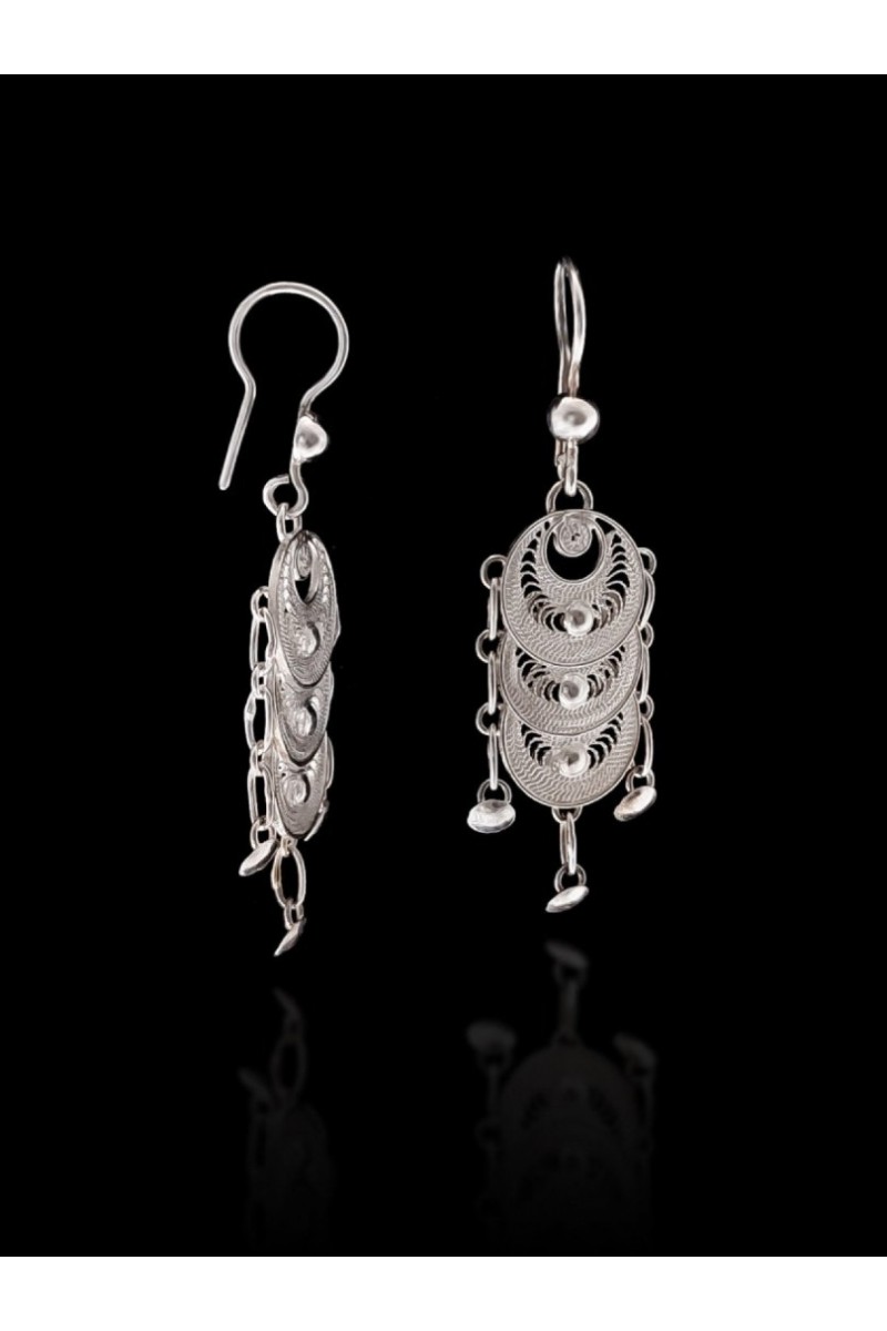 Sallantılı Yuvarlak Model 925 Ayar Telkari Gümüş Küpe - SG20230450