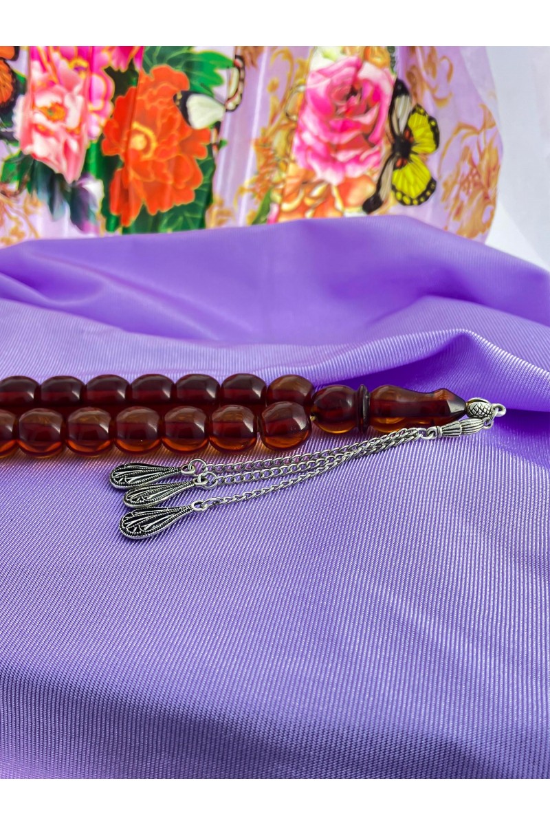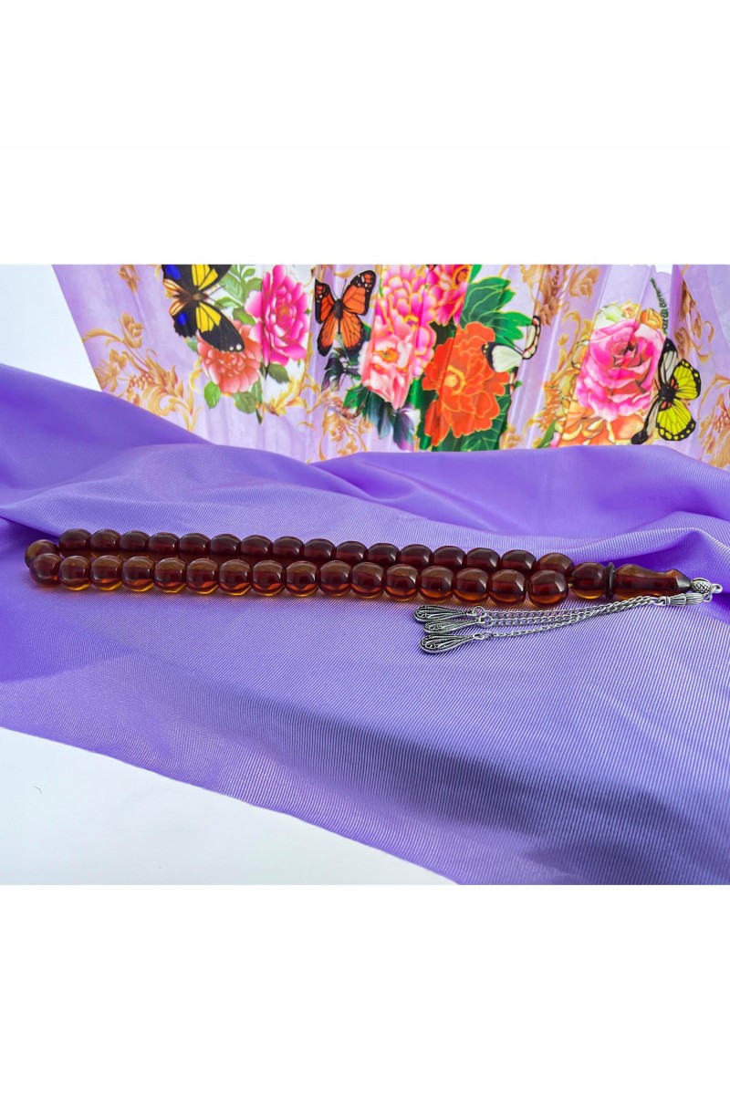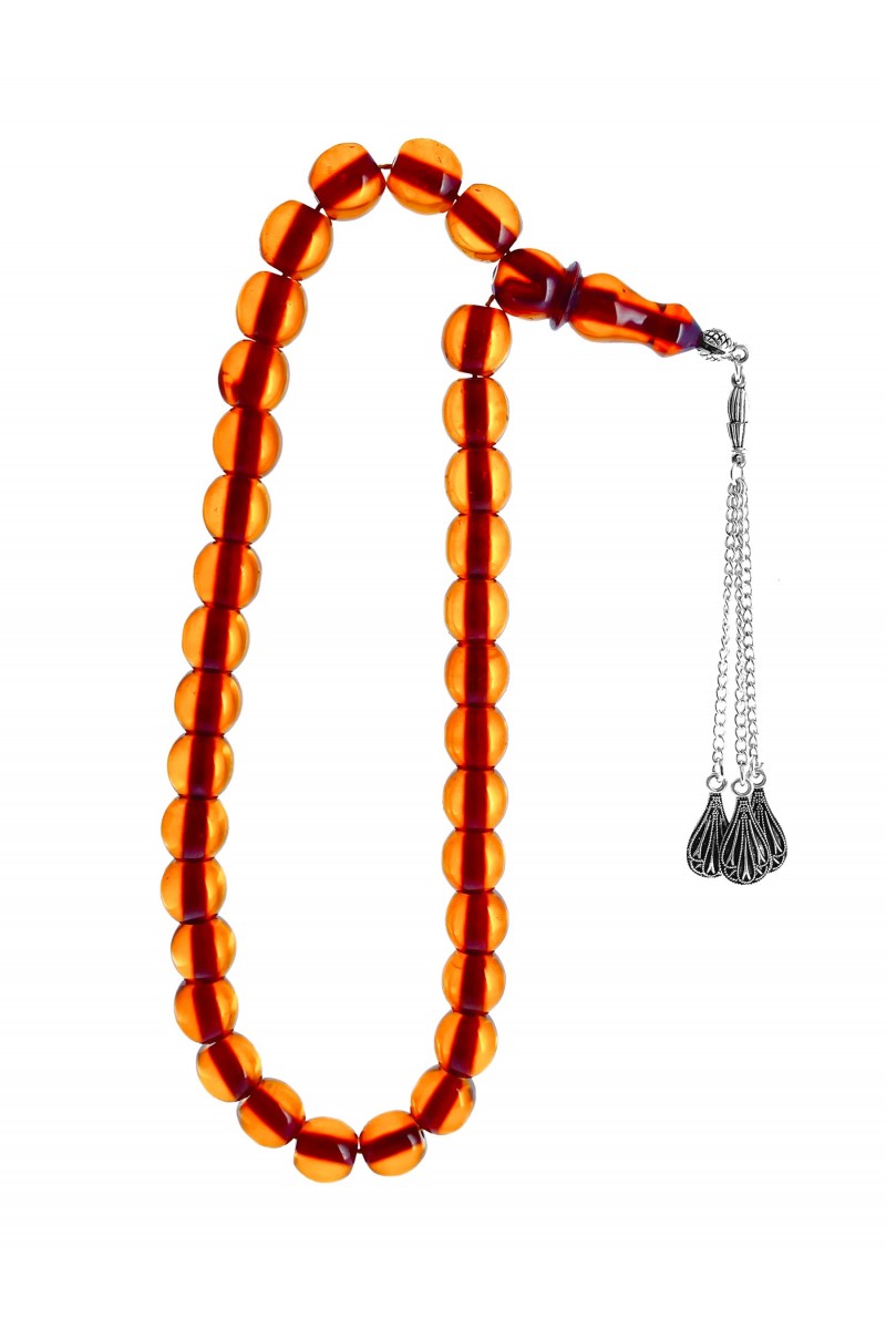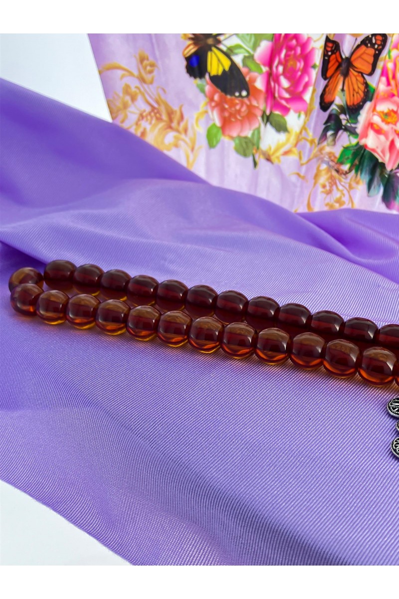 Sarı Hareli Kapsül Kesim Sıkma Kehribar Tesbih - SG20230599