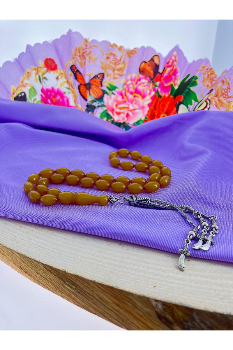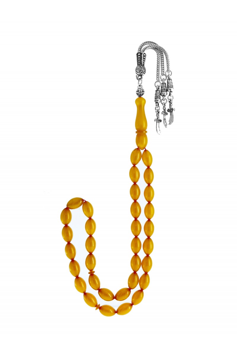 Sarı Hareli Kesim Sıkma Kehribar Tesbih - SG20230612