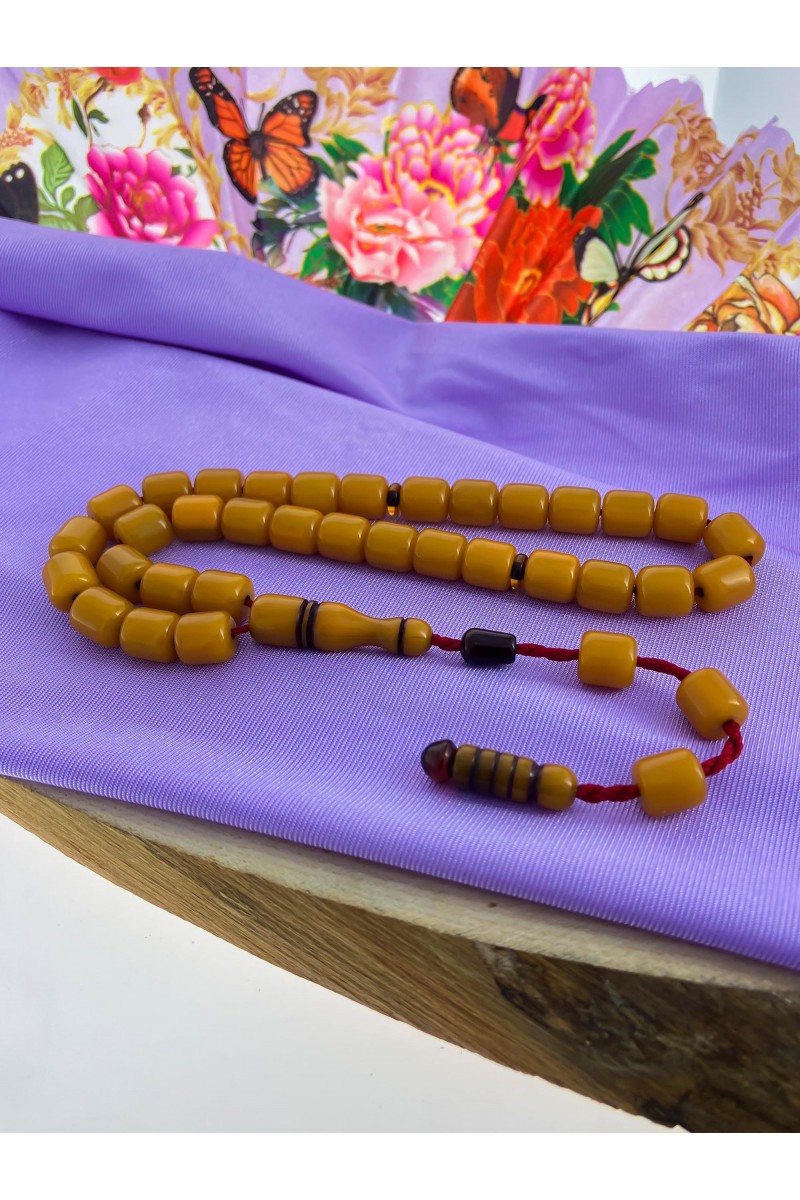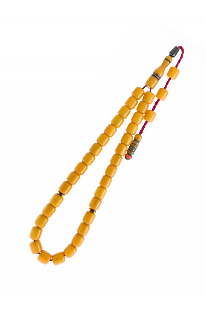 Sarı Renk Tekerlek Sistemli Püskül Sıkma Kehribar Tesbih - SG20230624