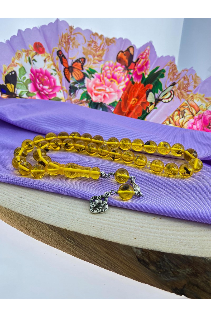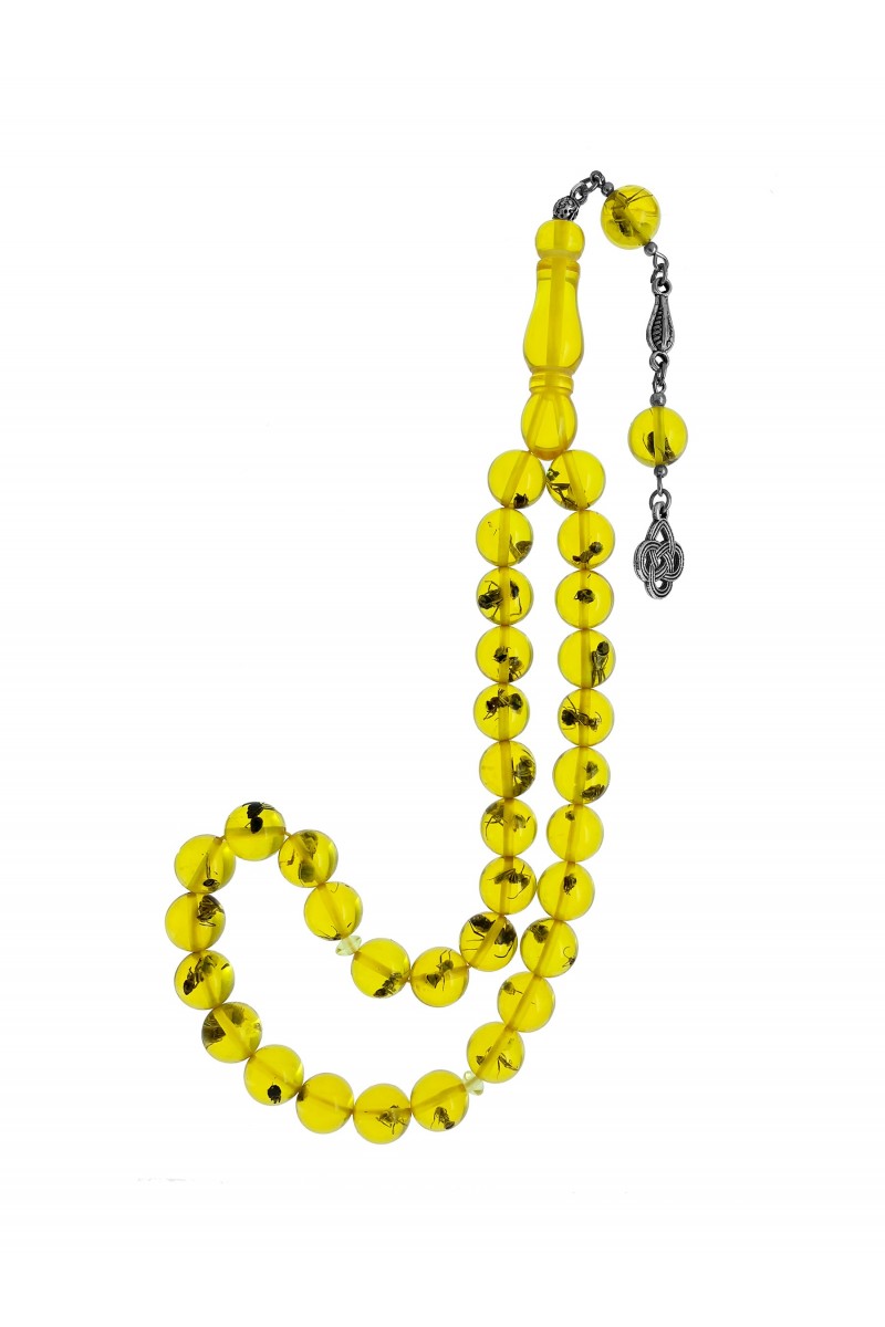 Sarı Renkli Karınca Fosilli Toz Kehribar Tesbih - SG20230649