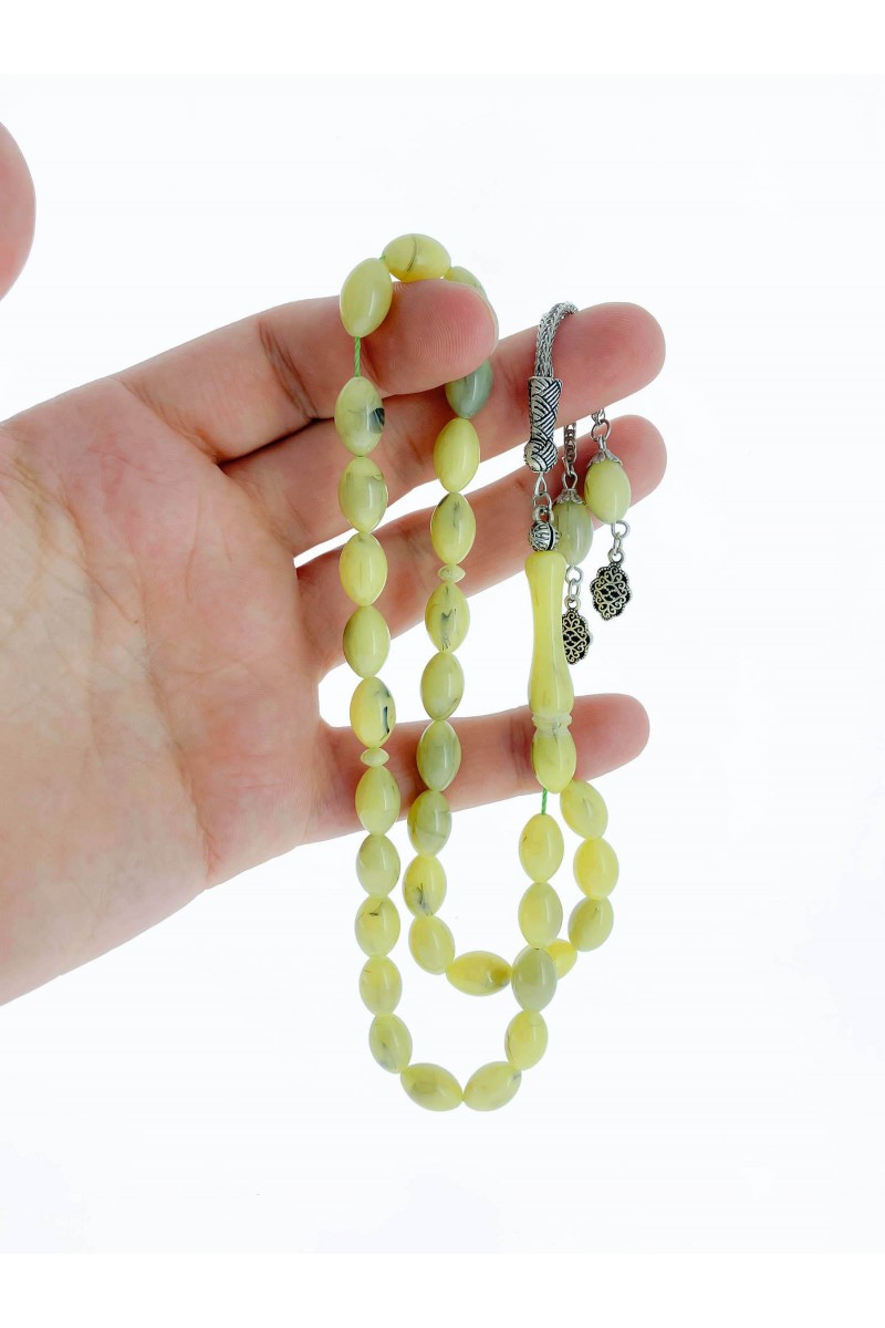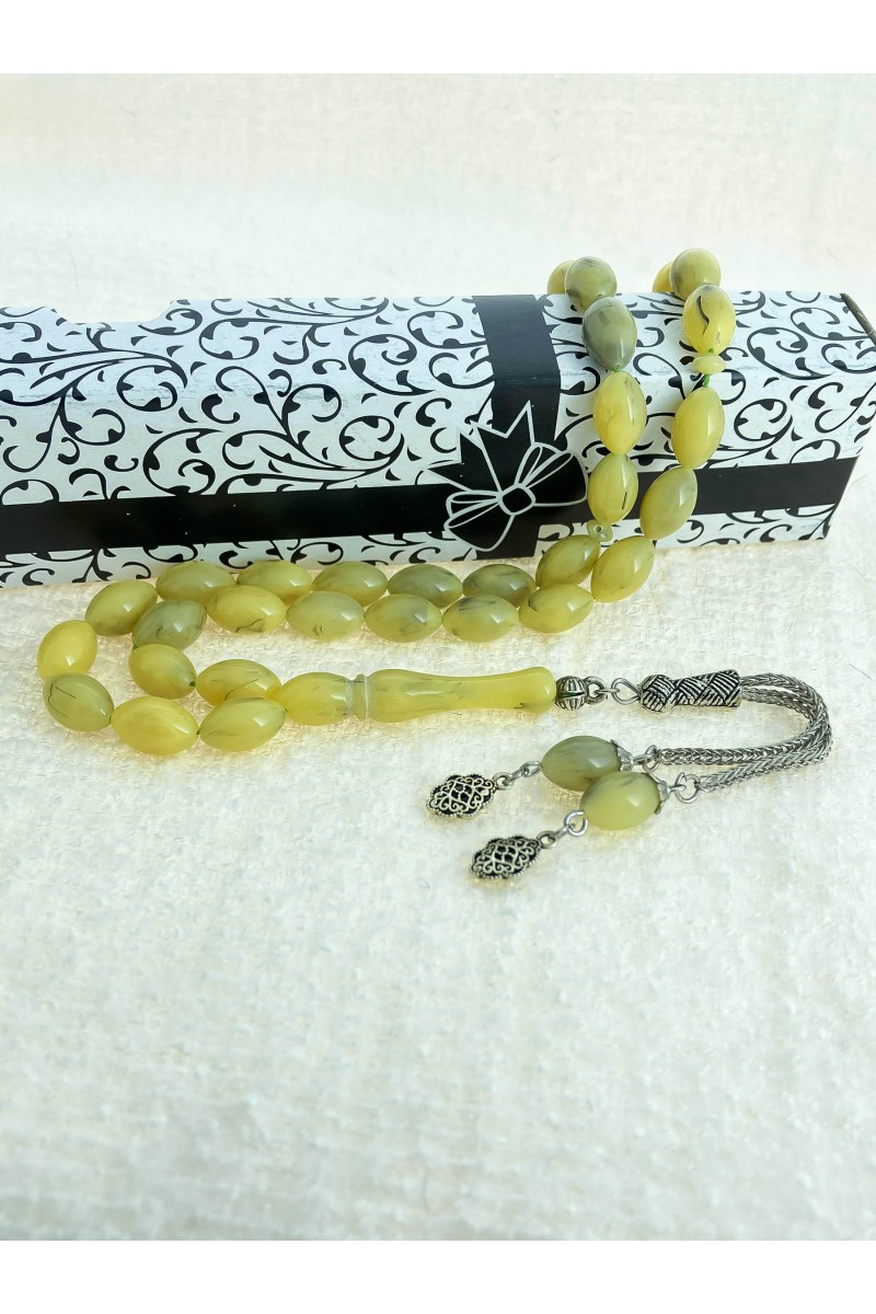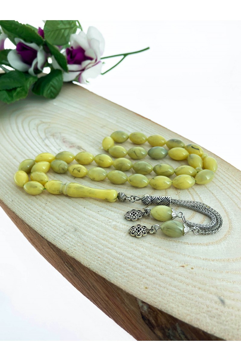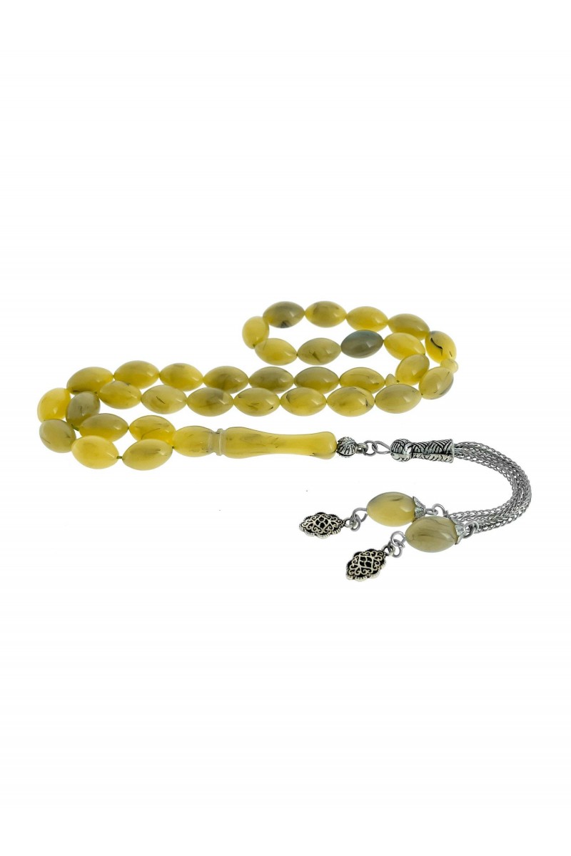Ürün Hakkında : Syiah Hareli Sarı Toz Kehribar Tesbih.
