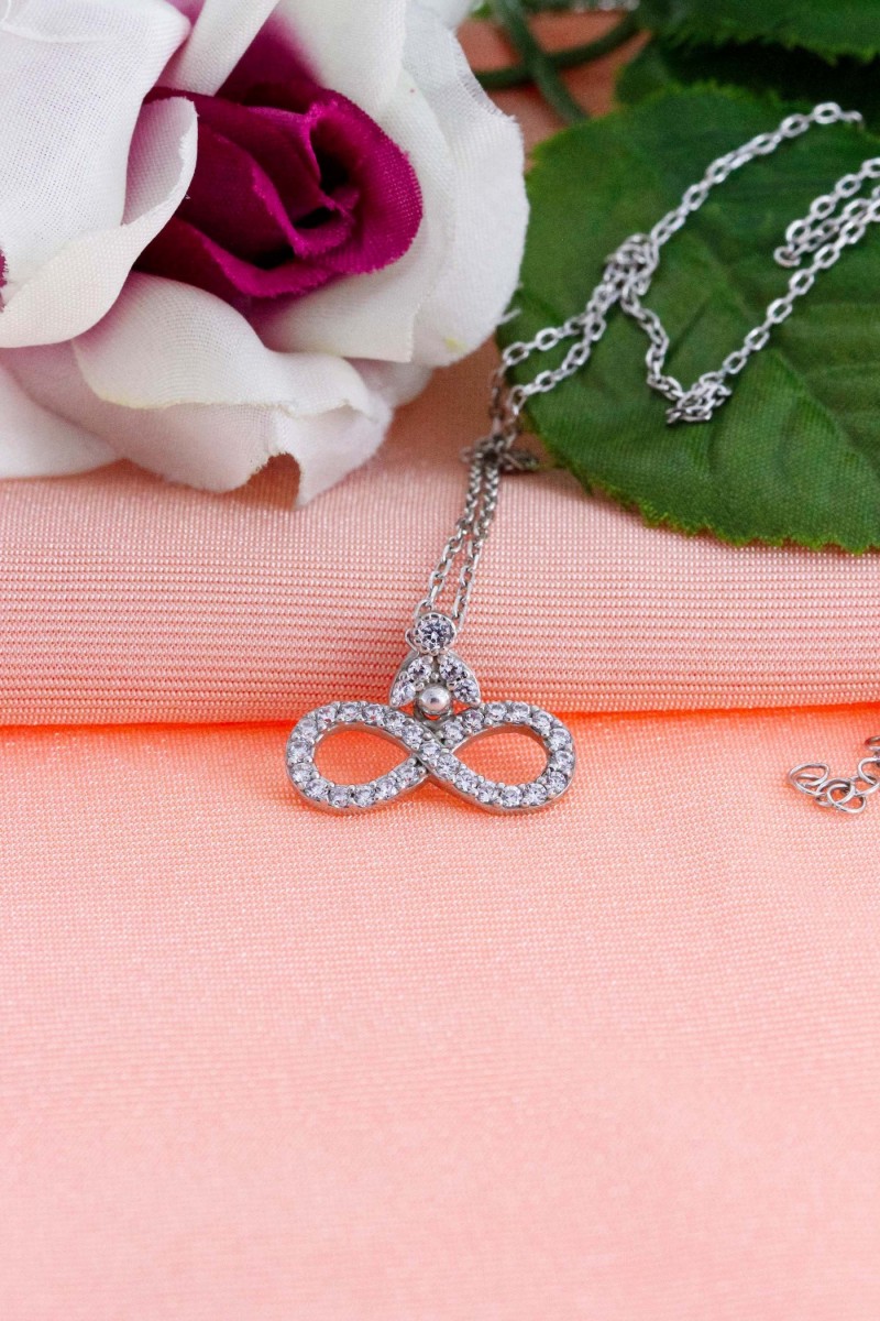 Sonsuzluk Model Zirkon Taşlı Gümüş Kolye - SG20230738