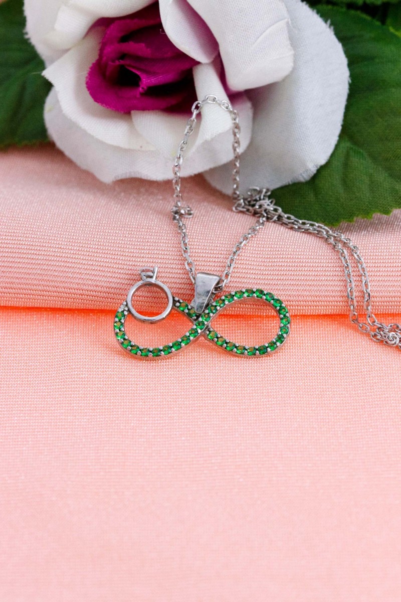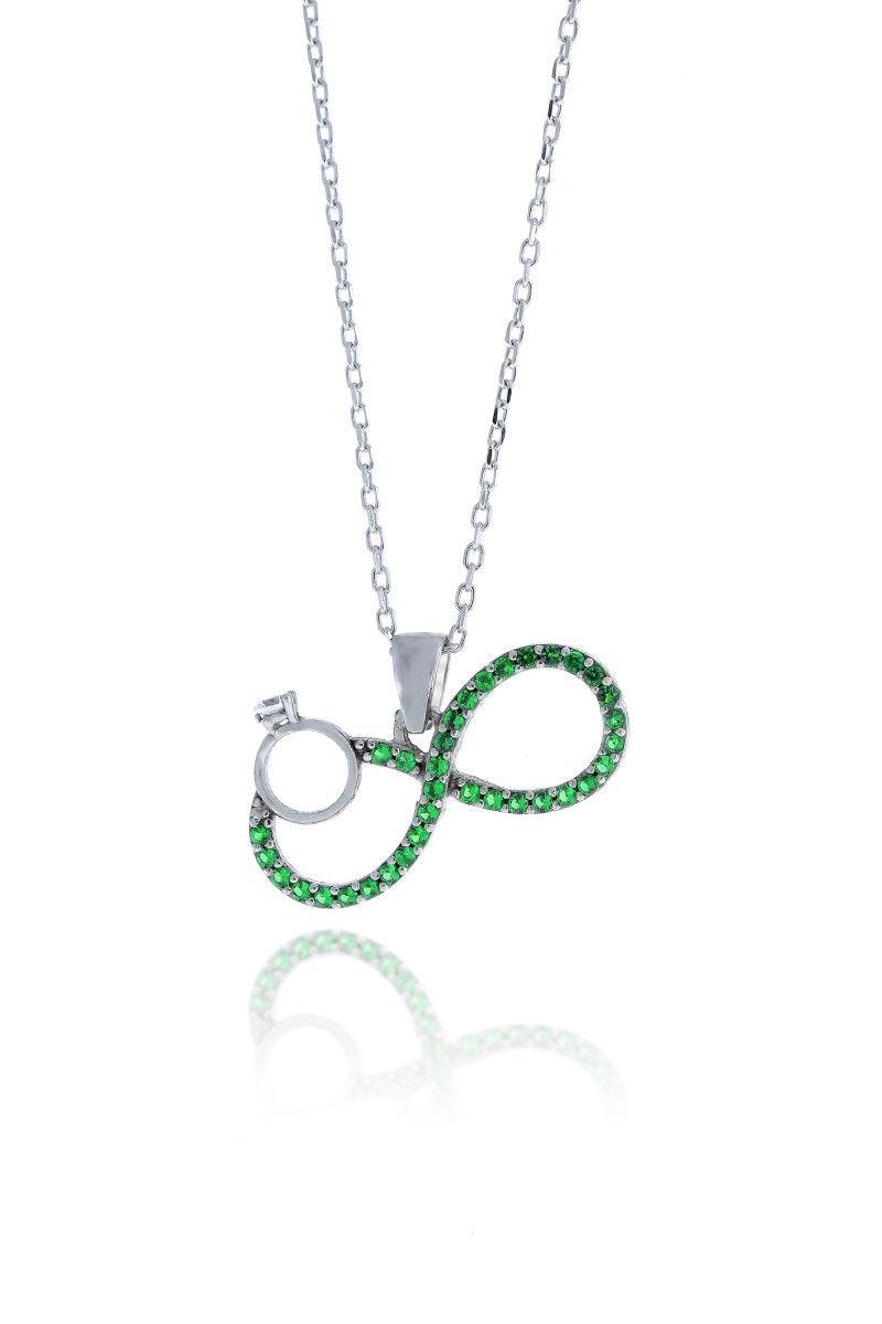 Sonsuzluk Tektaş Model Zümrüt ve Zirkon Taşlı Gümüş Kolye - SG20230712