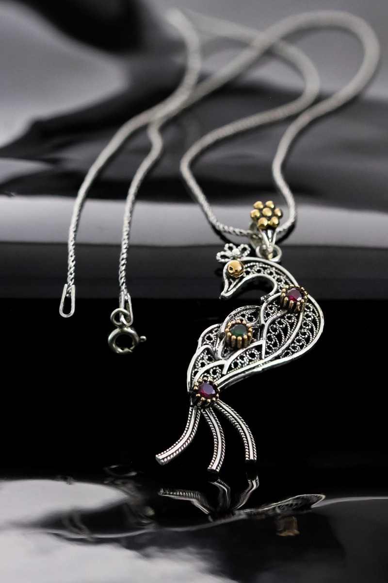 Tavus Kuşu Model 925 Ayar Telkari Gümüş Kolye Ucu - SG20230928