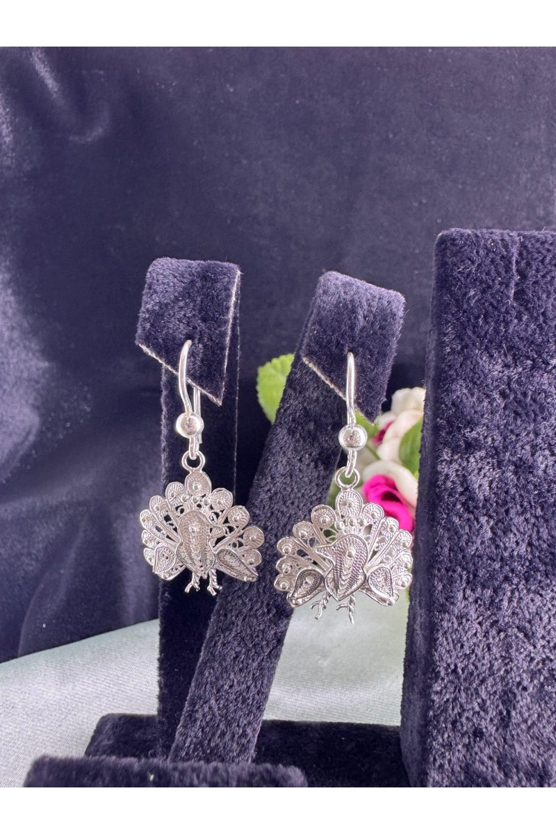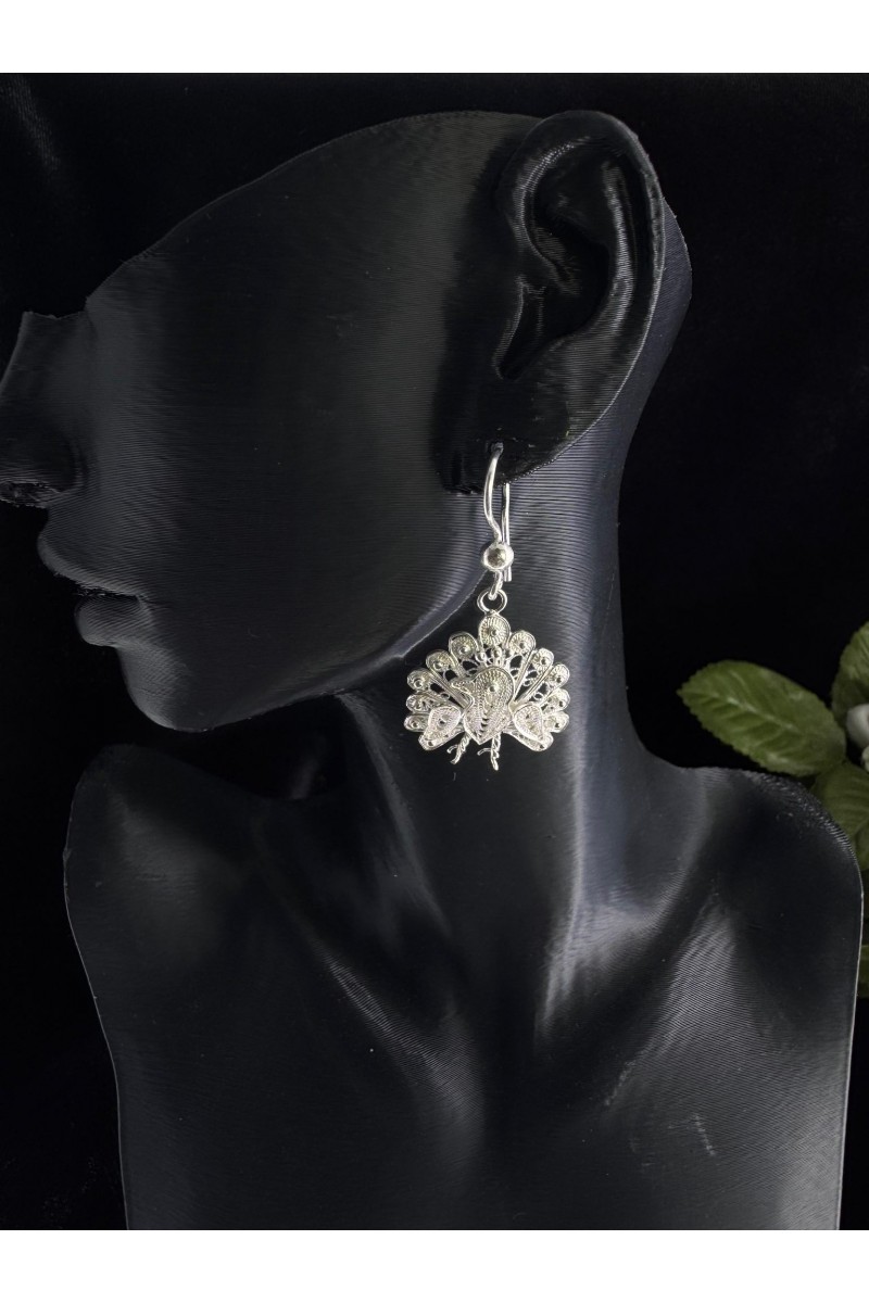 Tavus kuşu model sallantılı model el işi telkari gümüş küpe - SG20231518