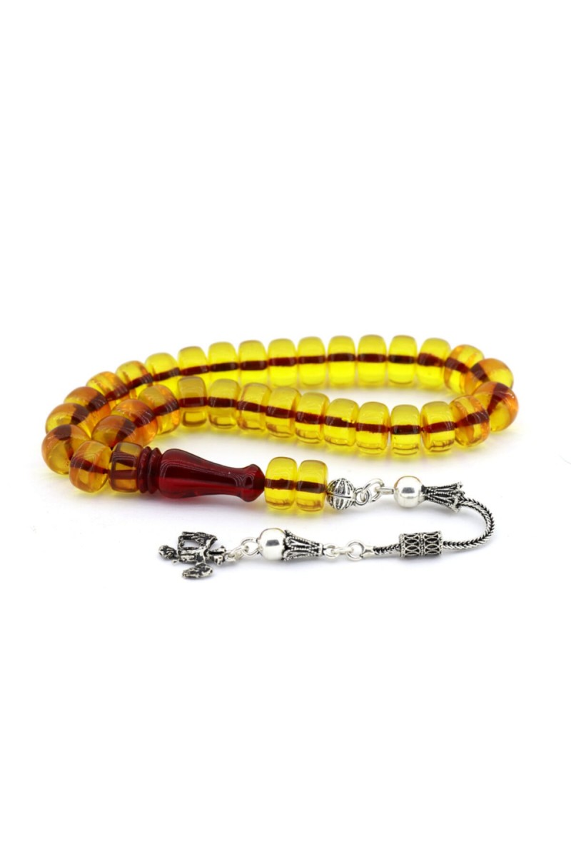 Tekerlek Kesim Sarı Gümüş Püsküllü Ateş Kehribar Tesbih - SG20230412