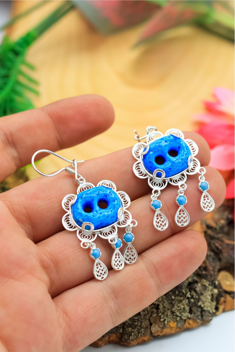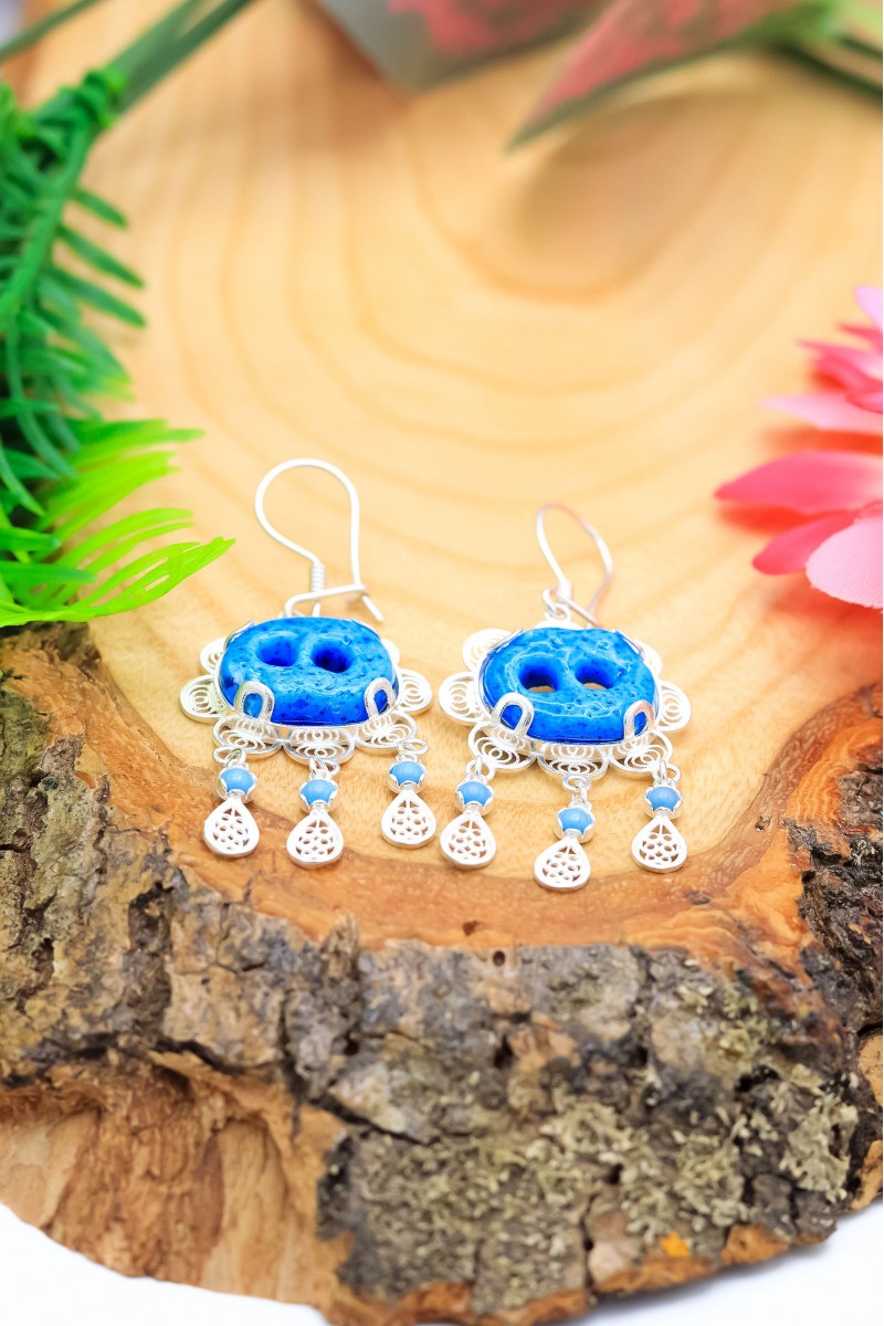 Telkari İşlemeli Midyat Süryani Nazar Boncuğu Bayan Gümüş Küpe - SG20230222