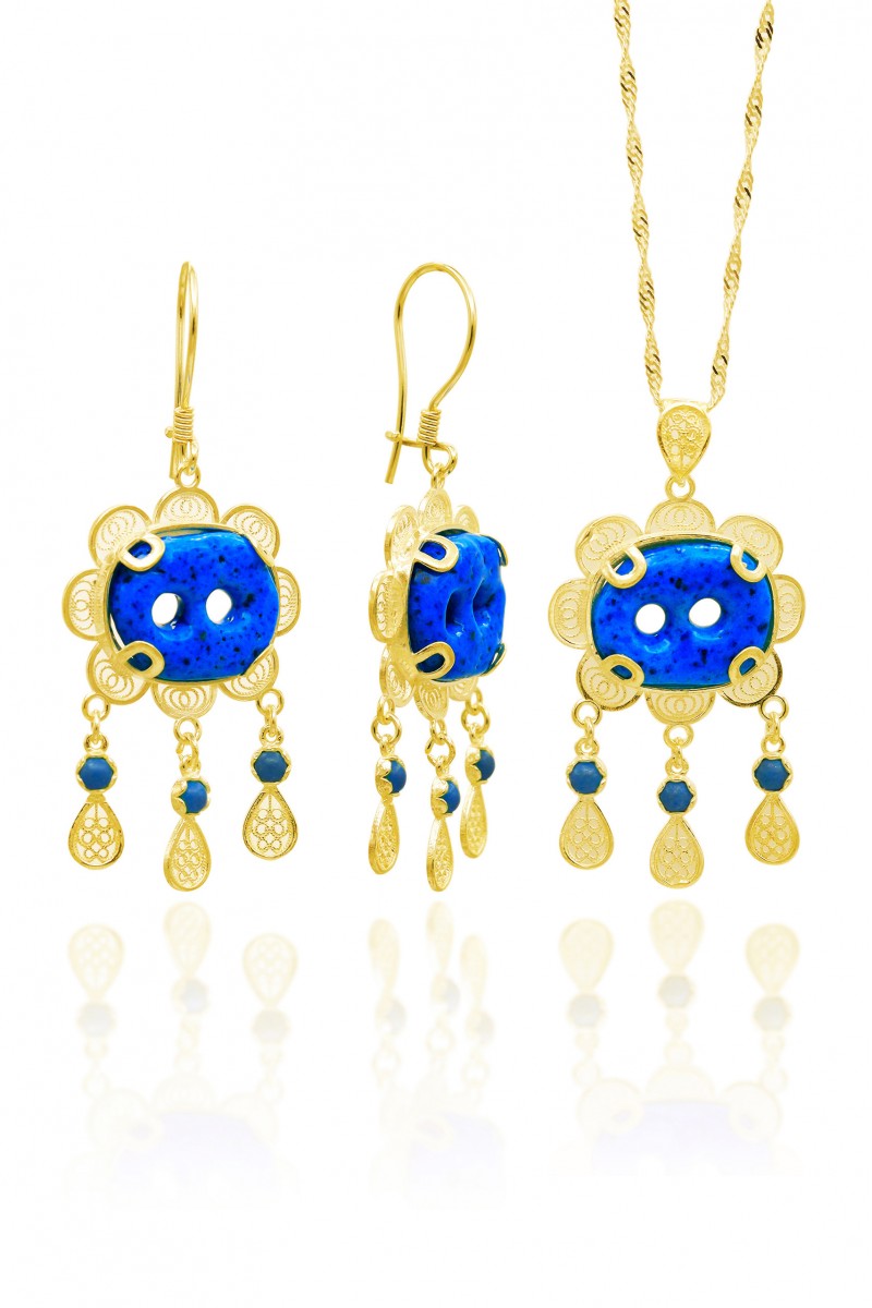 Telkari İşlemeli Midyat Süryani Nazar Boncuğu Gümüş Set - SG20230219