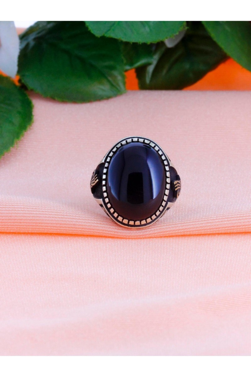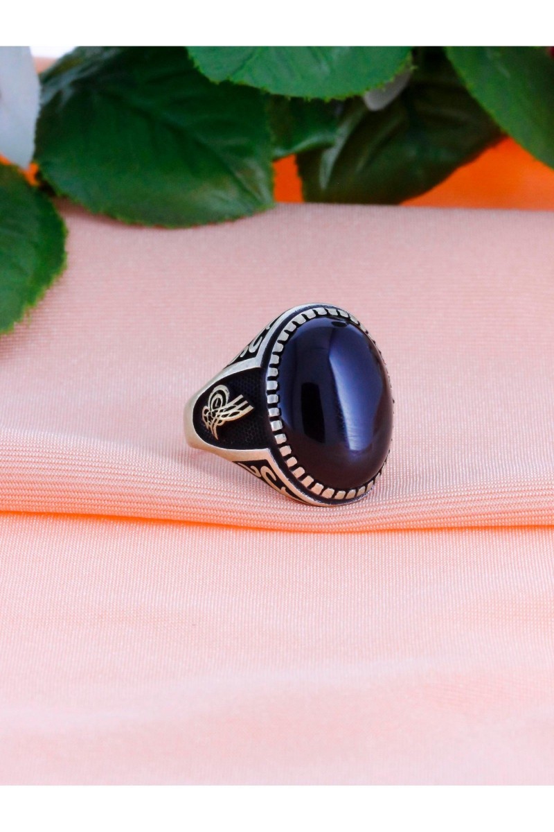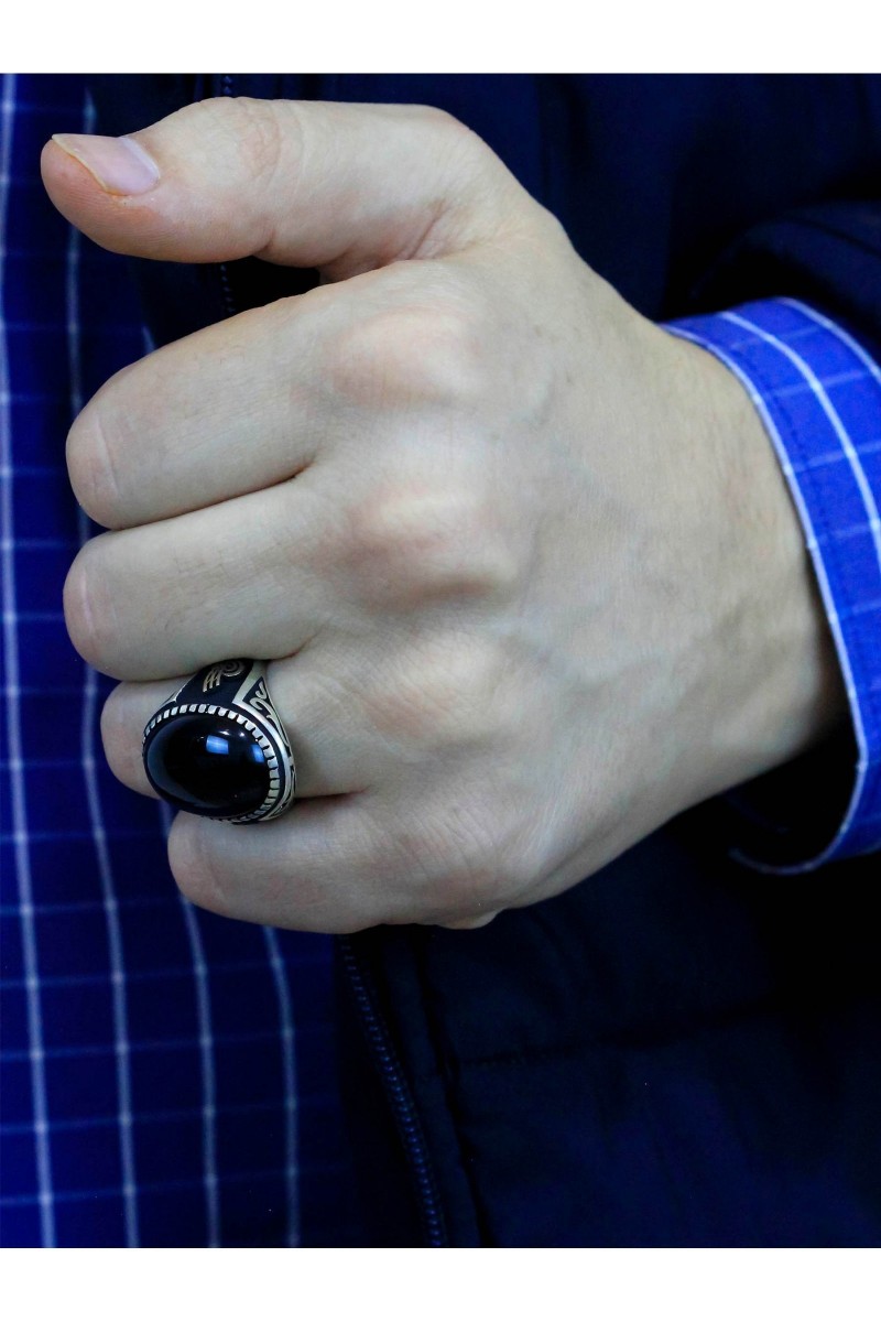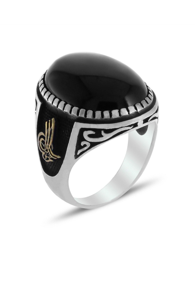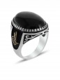 Tuğra İşleme Oniks Taşlı Erkek Gümüş Yüzük - SG20230797