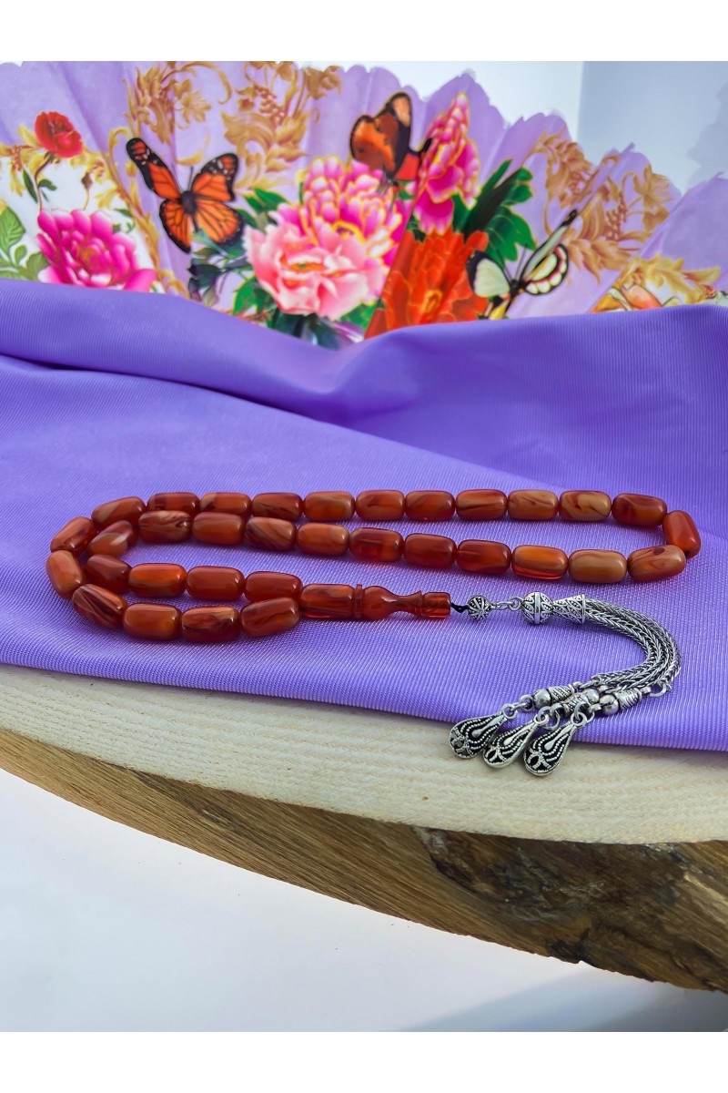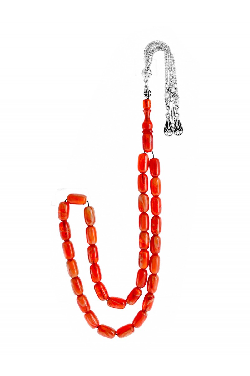 Turuncu Hareli Kesim Sıkma Kehribar Tesbih - SG20230614