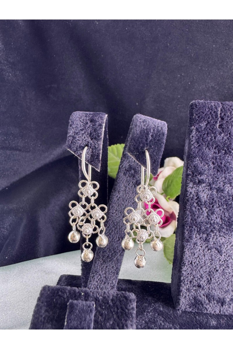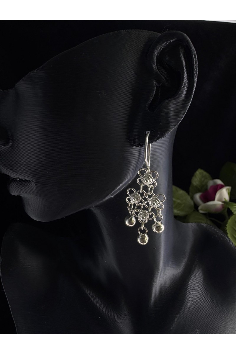 üçgen model kişniş motifi sallantılı model el işi telkari gümüş küpe - SG20231533