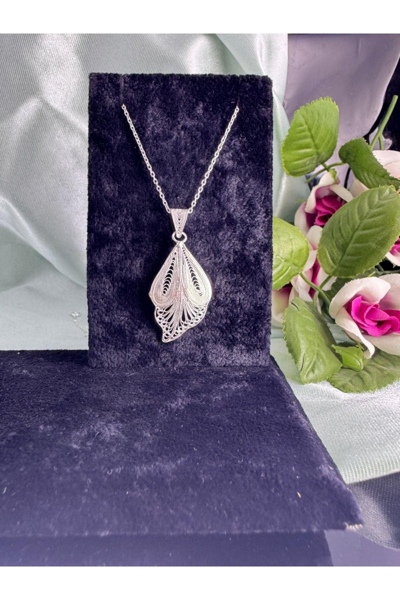 yaprak tasarımlı el işi telkari gümüş kolye - SG20231448