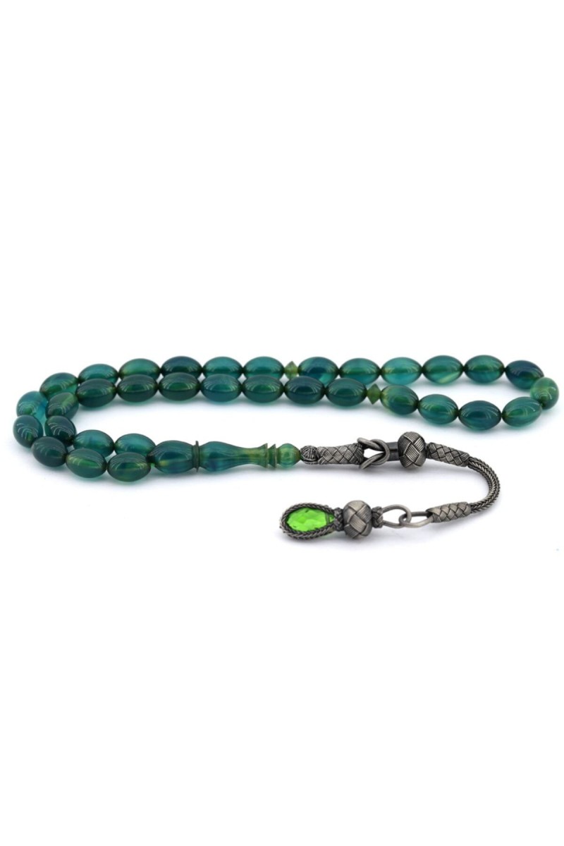 Yeşil Kazaz Püsküllü Ateş Kehribar Tesbih - SG20230357