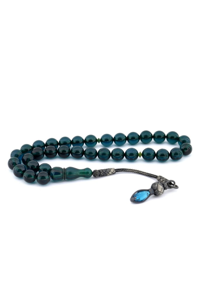 Yeşil Kazaz Püsküllü Ateş Kehribar Tesbih - SG20230358