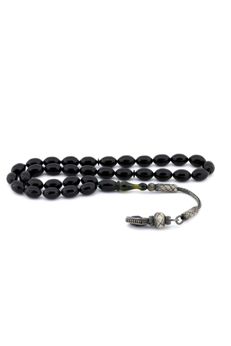Yeşil Siyah Kazaz Püsküllü Ateş Kehribar Tesbih - SG20230362