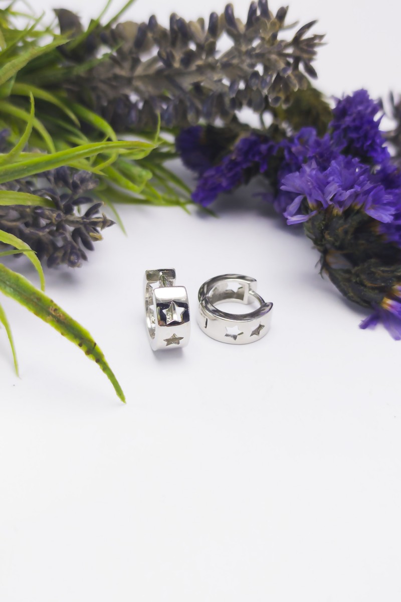 Yıldızlı Halka Tasarım Gümüş Küpe - SG20230280