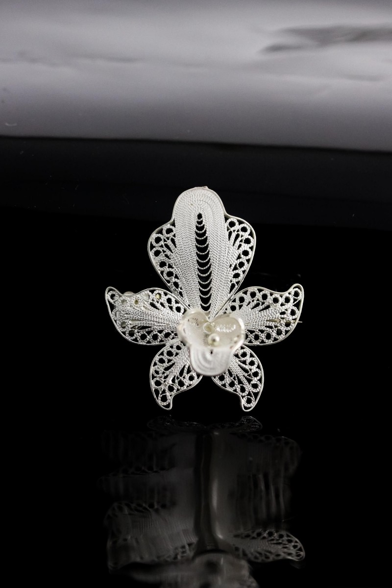Zambak Model El işi Telkari Gümüş Broş & Yaka İğnesi