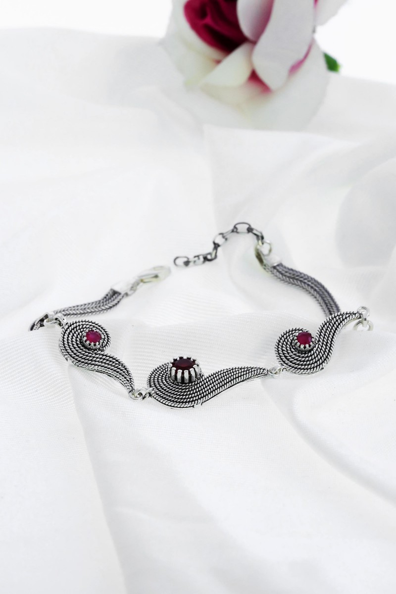 ZirkonTaşlı El Işçiliği Telkari Gümüş Bileklik - SG20231141