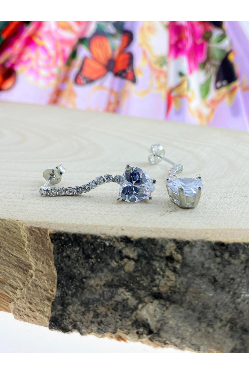 zümrüt Taşlı sallantılı kalpli Model Zirkon Gümüş Küpe - SG20230544